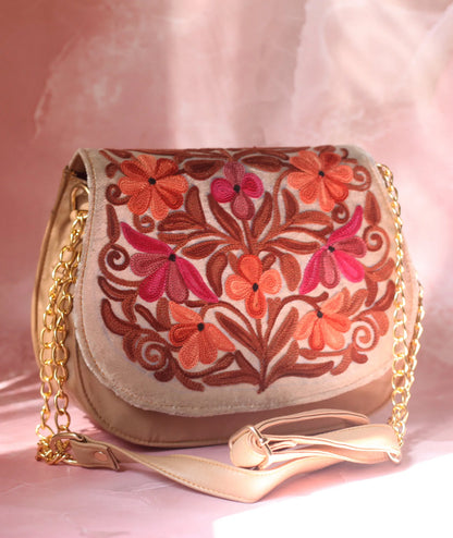 Discover the elegance of our Beige Aari Embroidered Full Flap Sling Bag. Handcrafted with intricate details, this bag is a perfect blend of style and functionality. Shop now!