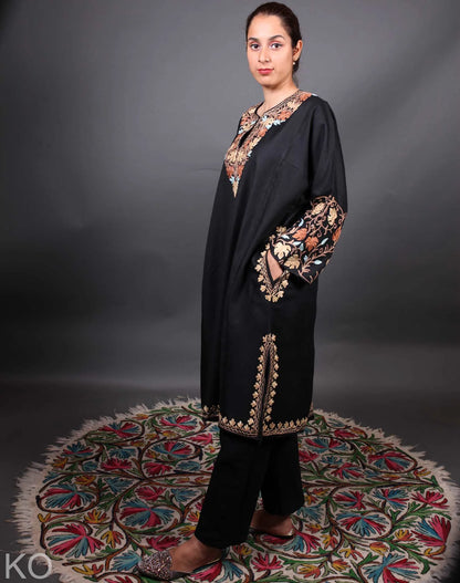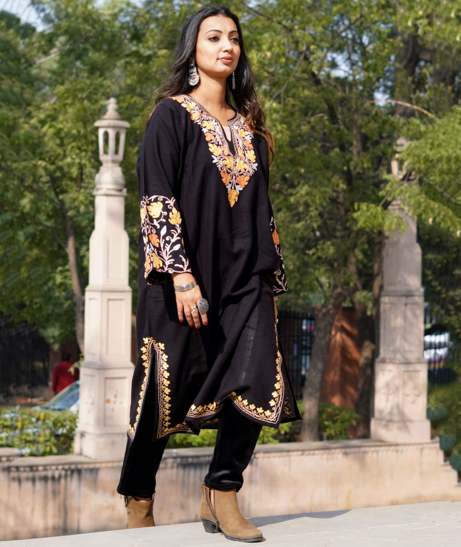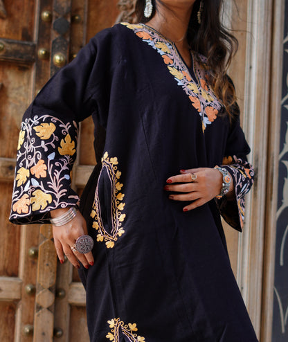Black Aari Embroidered Pheran | Fine Wool| Cashmilon