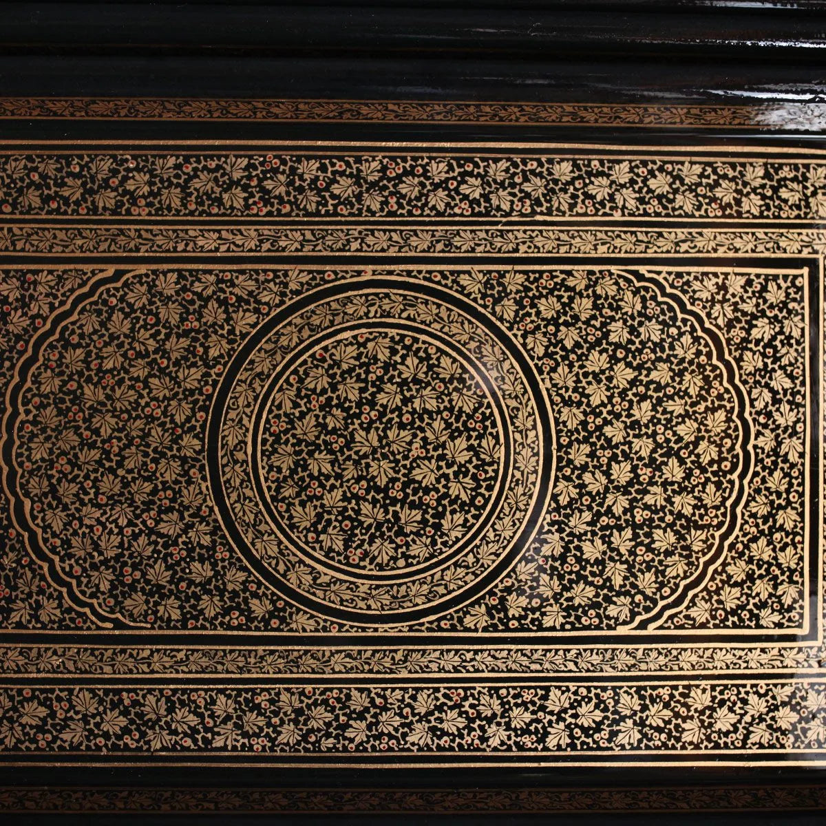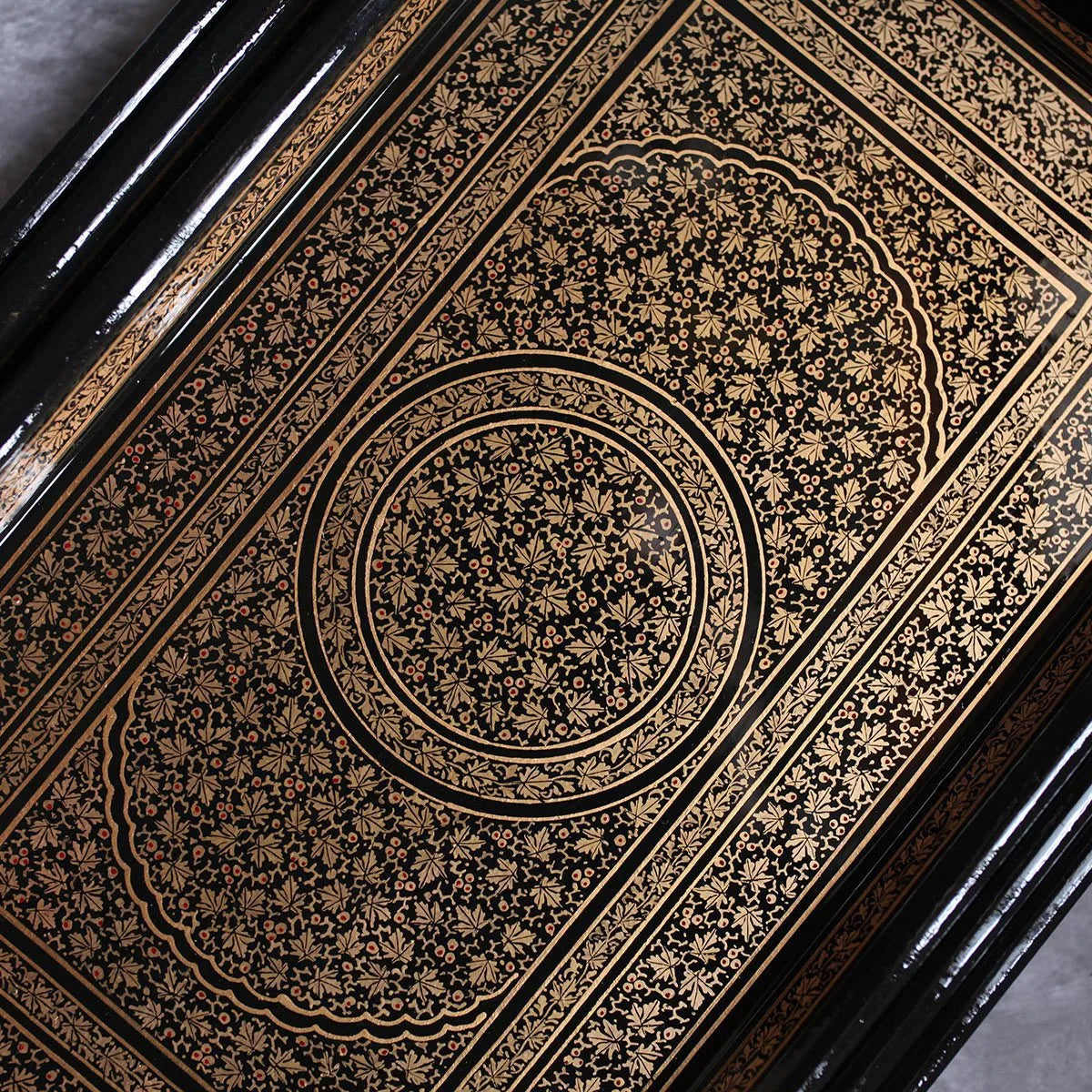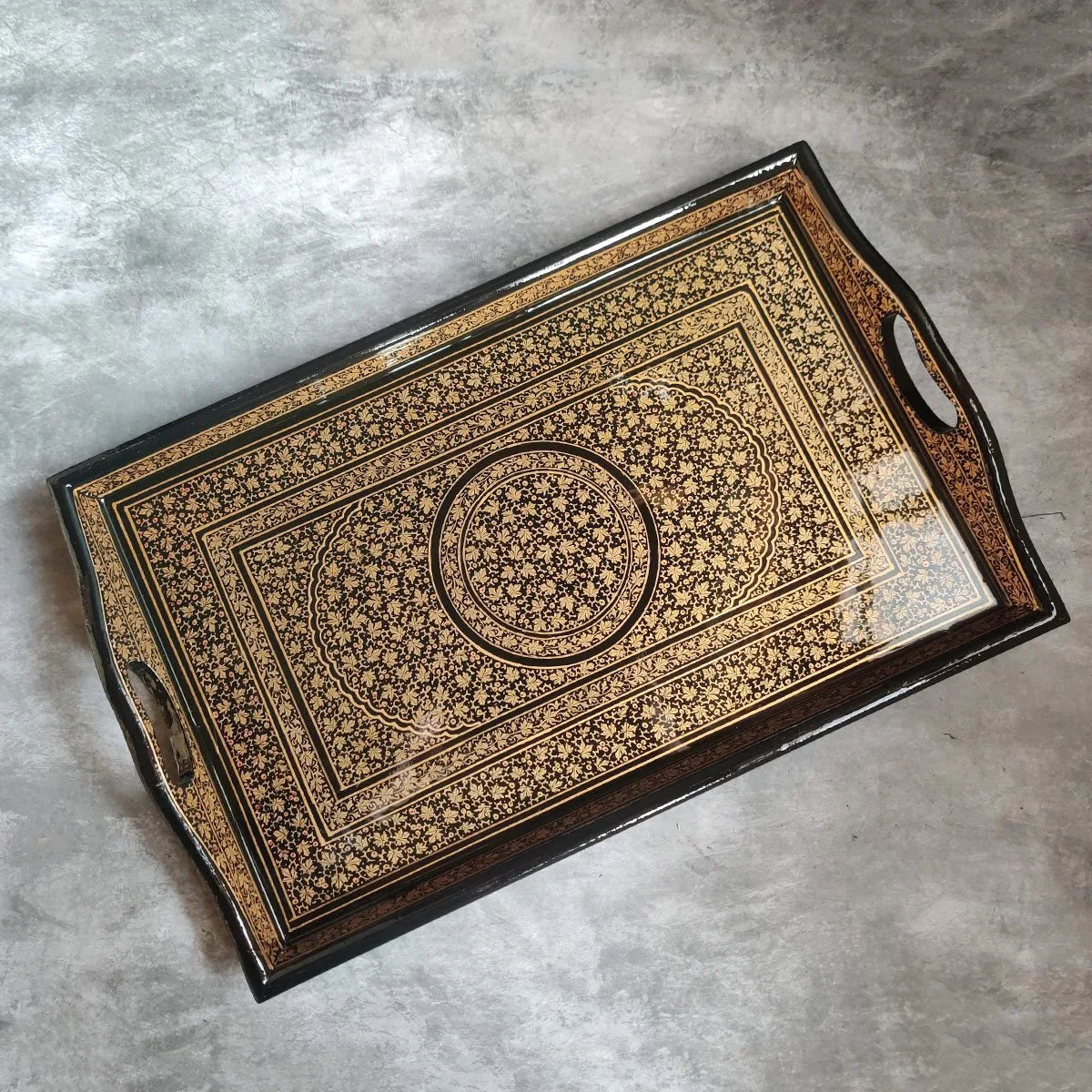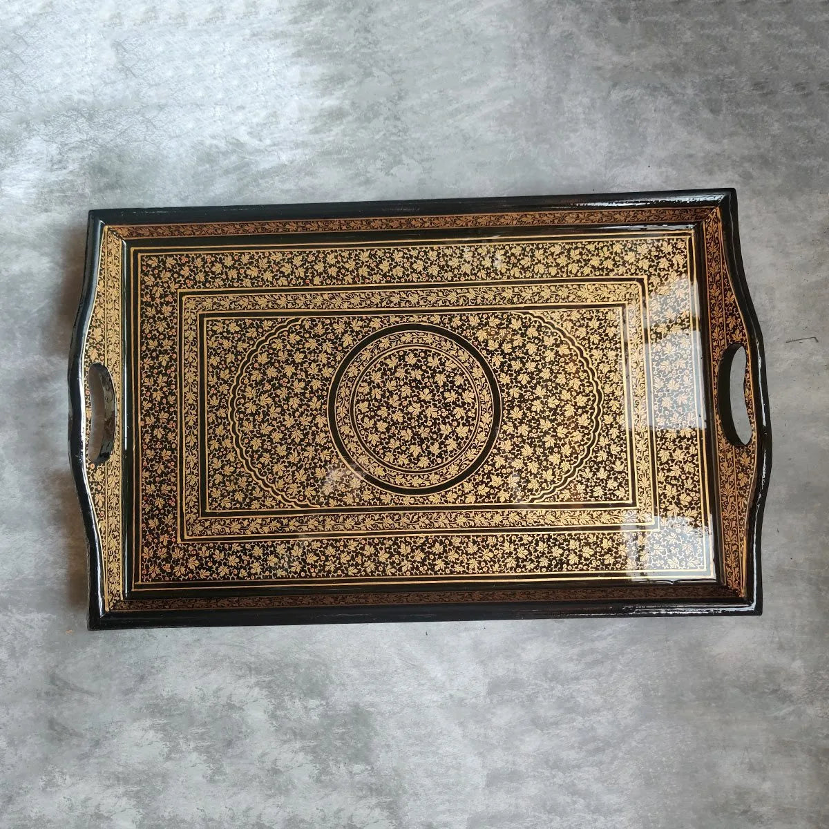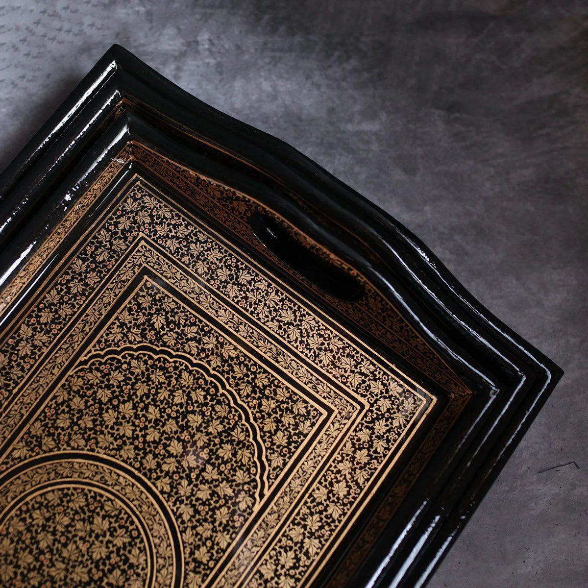 Black base gold work tradational design Wood base Paper Mache Tray Set of 3 | Handmade Paper Mache | Intense Design kashmir Art