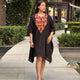 Black Floral Neck Embroidered Short Kaftan