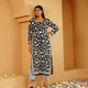 The dress features a round neckline and full sleeves, making it suitable for both formal and casual events. The black color adds a touch of glamour and makes it a versatile piece that can be styled in various ways. Whether you pair it with heels for a formal event or with flats for a casual outing, this dress is sure to make you stand out.
