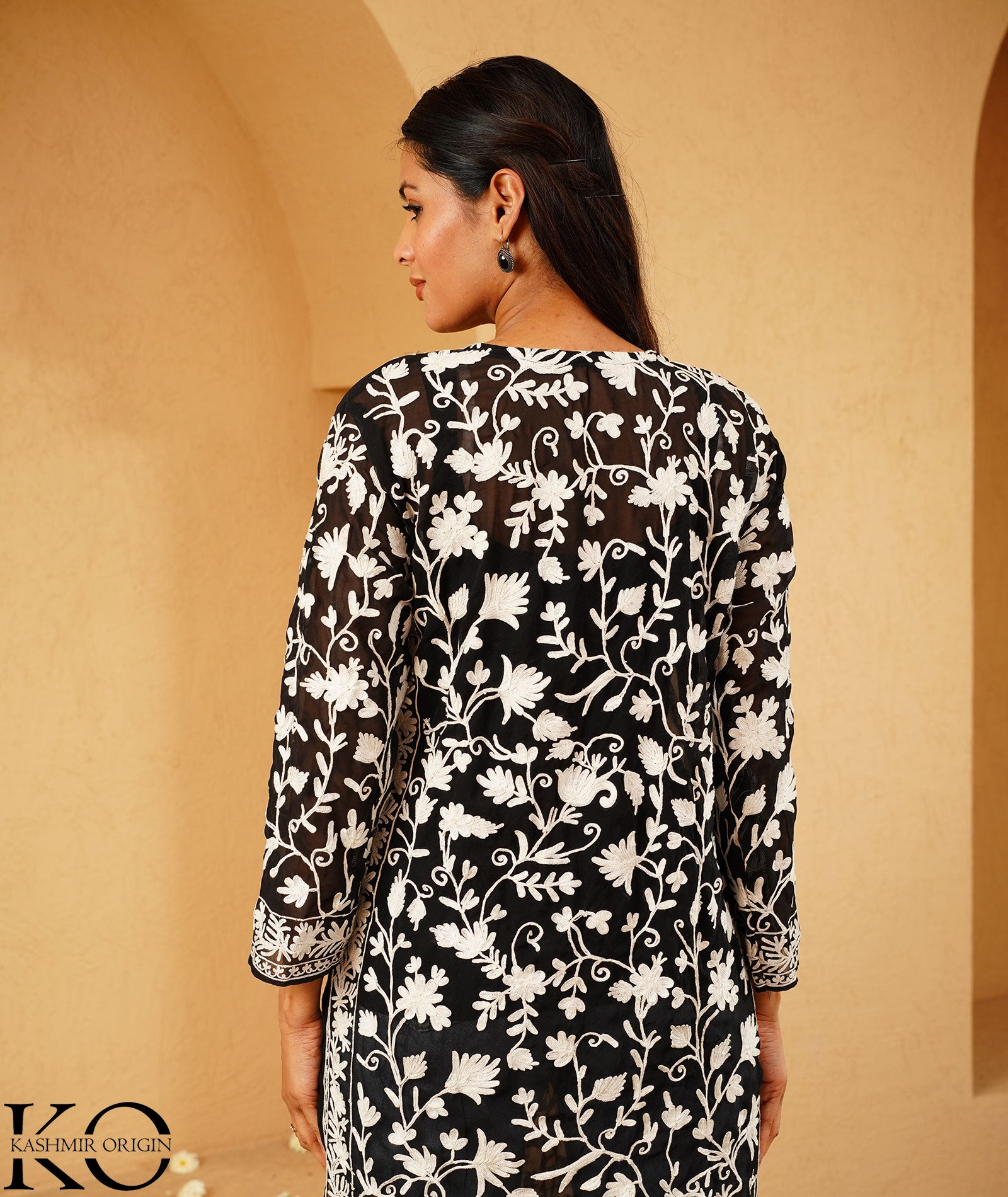 Black Georgette Aari Embroidered Kashmiri Long Dress