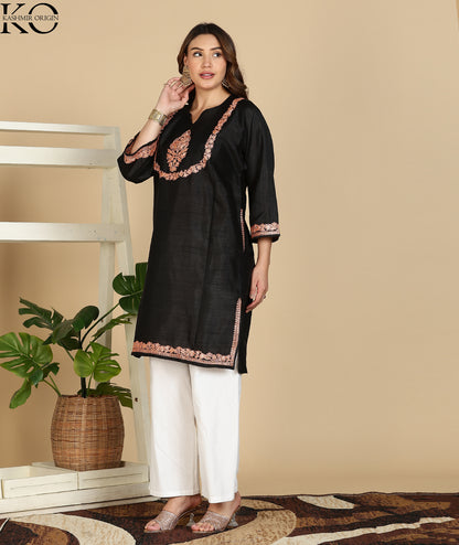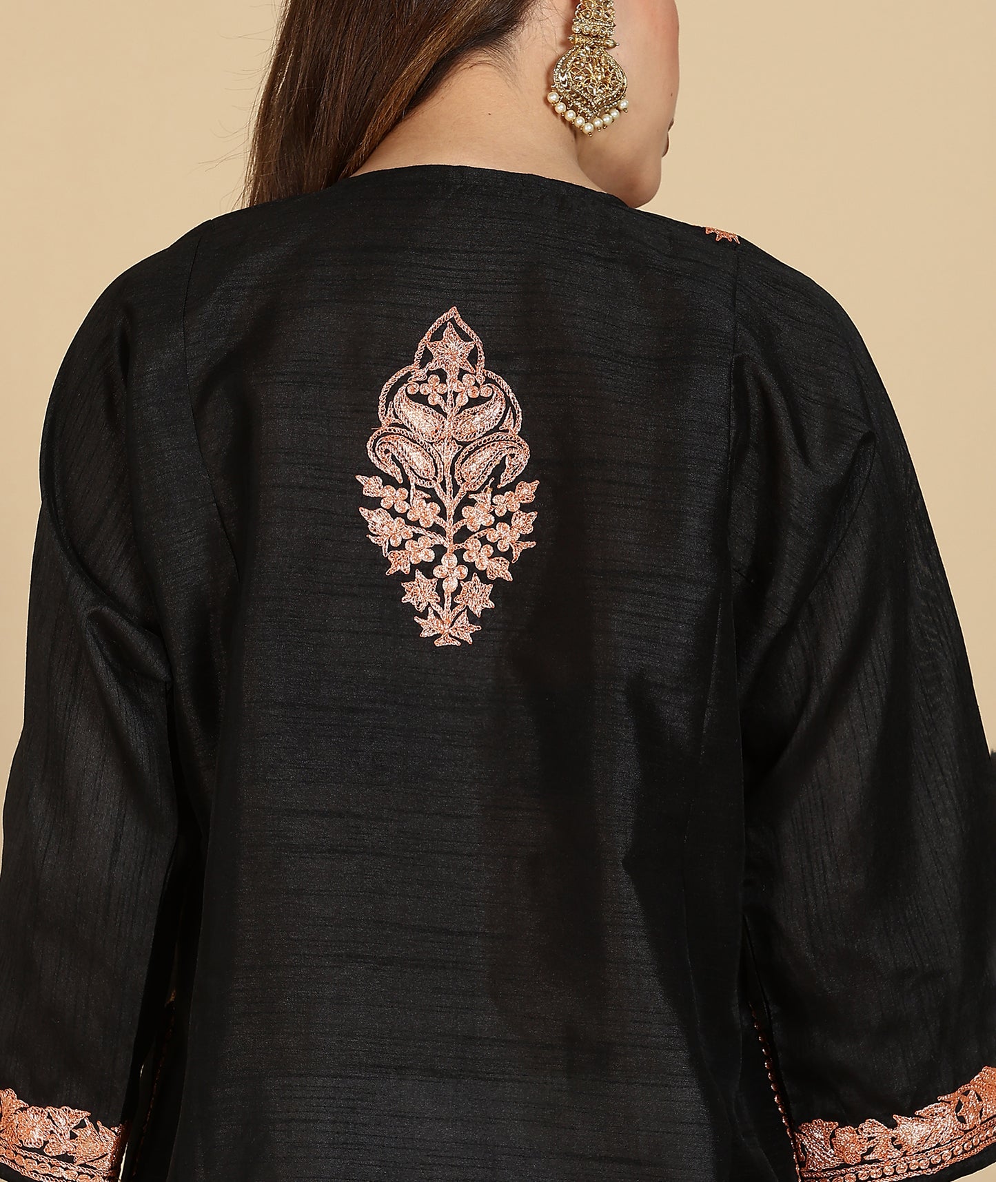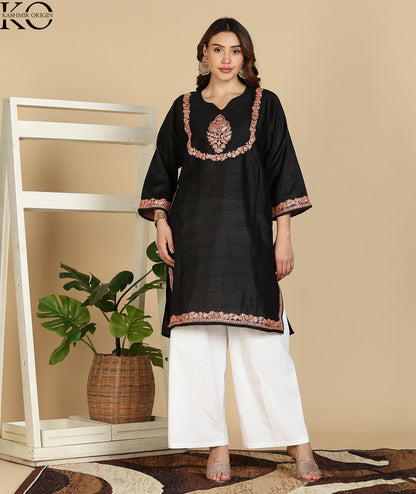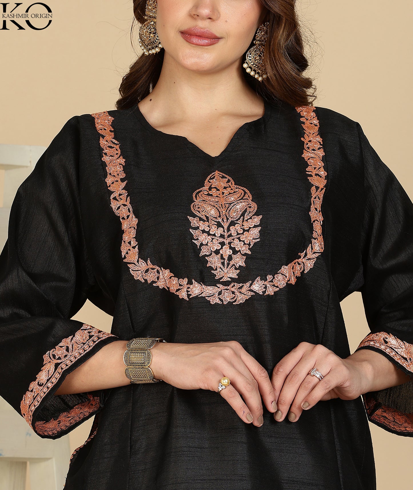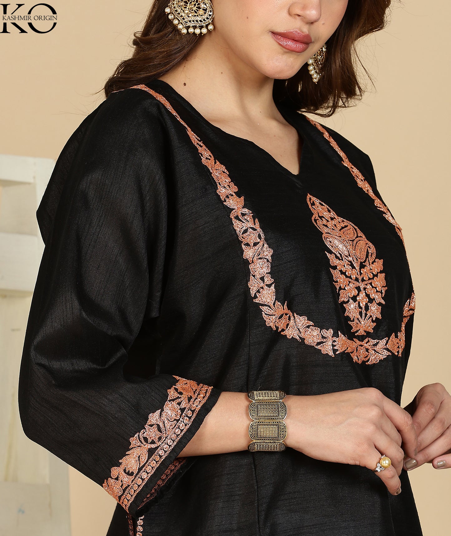 Black Tilla Embroidered Kashmiri Silk Pheran