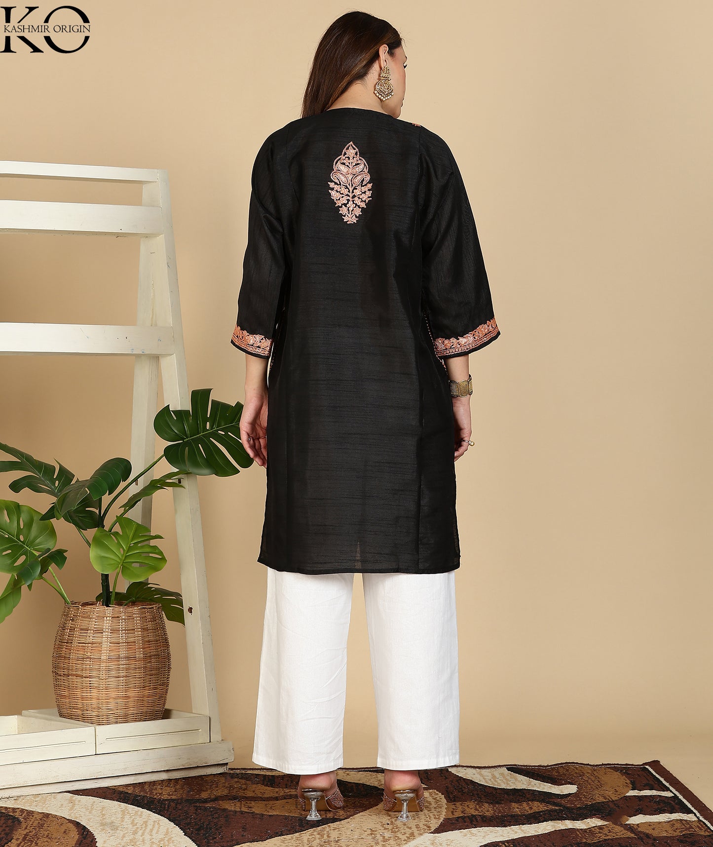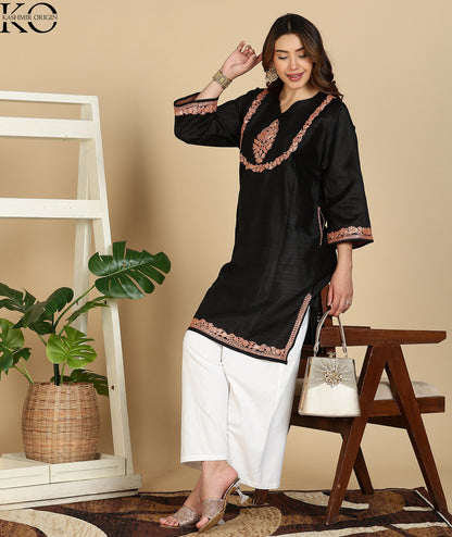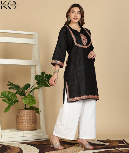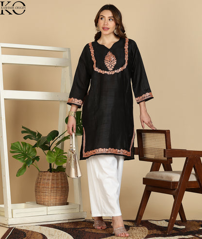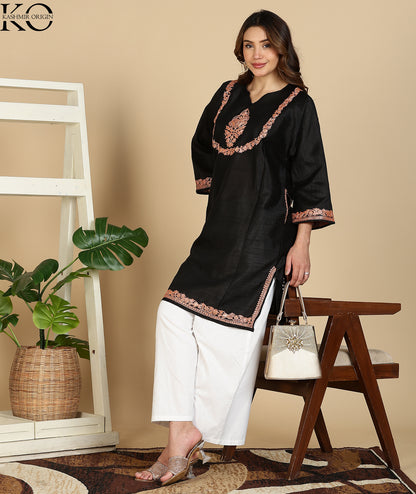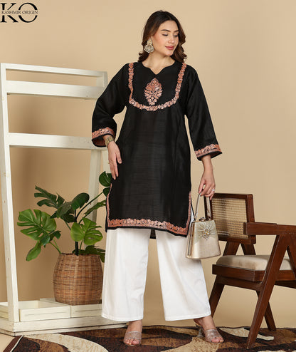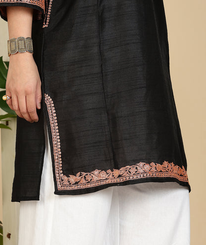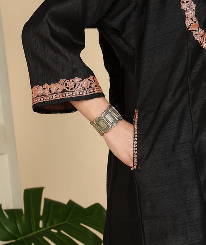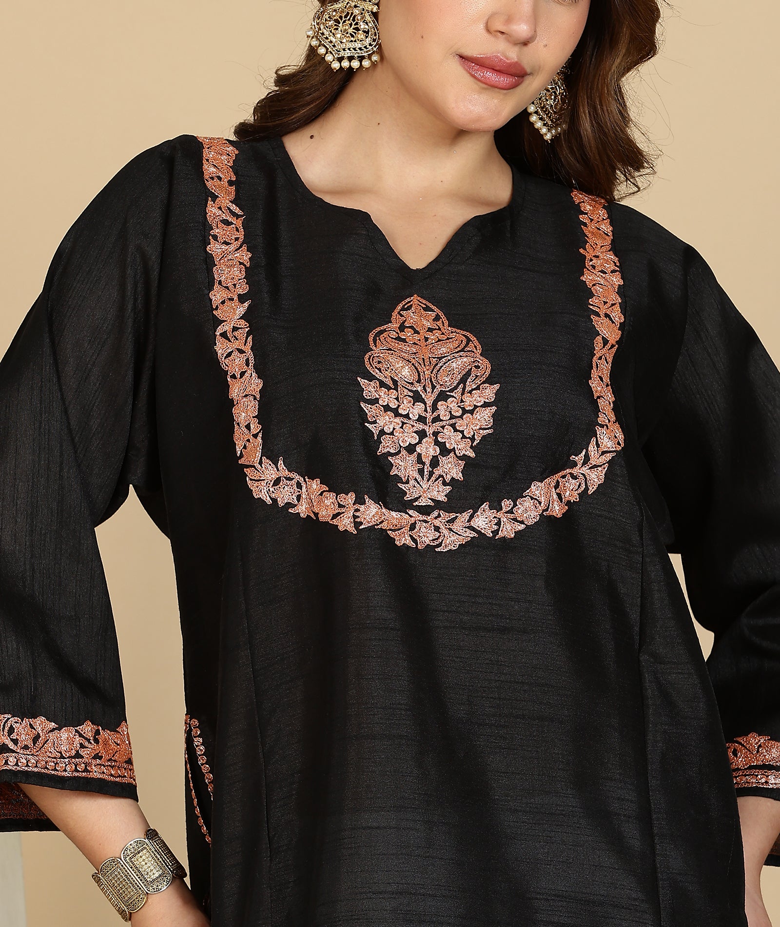 Black Tilla Embroidered Kashmiri Silk Pheran