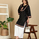 The timeless classic of Kashmiri Pheran has just been reimagined by the artisan with this Black Silk Pheran, crafted thoughtfully in a silhouette made for summer. Its deep black colour is paired with exquisite Tilla work for a combination that speaks quiet luxury. Whether you're dressing up for an intimate gathering or stepping out for a festive occasion, this pheran adorns you in an unmatched grace