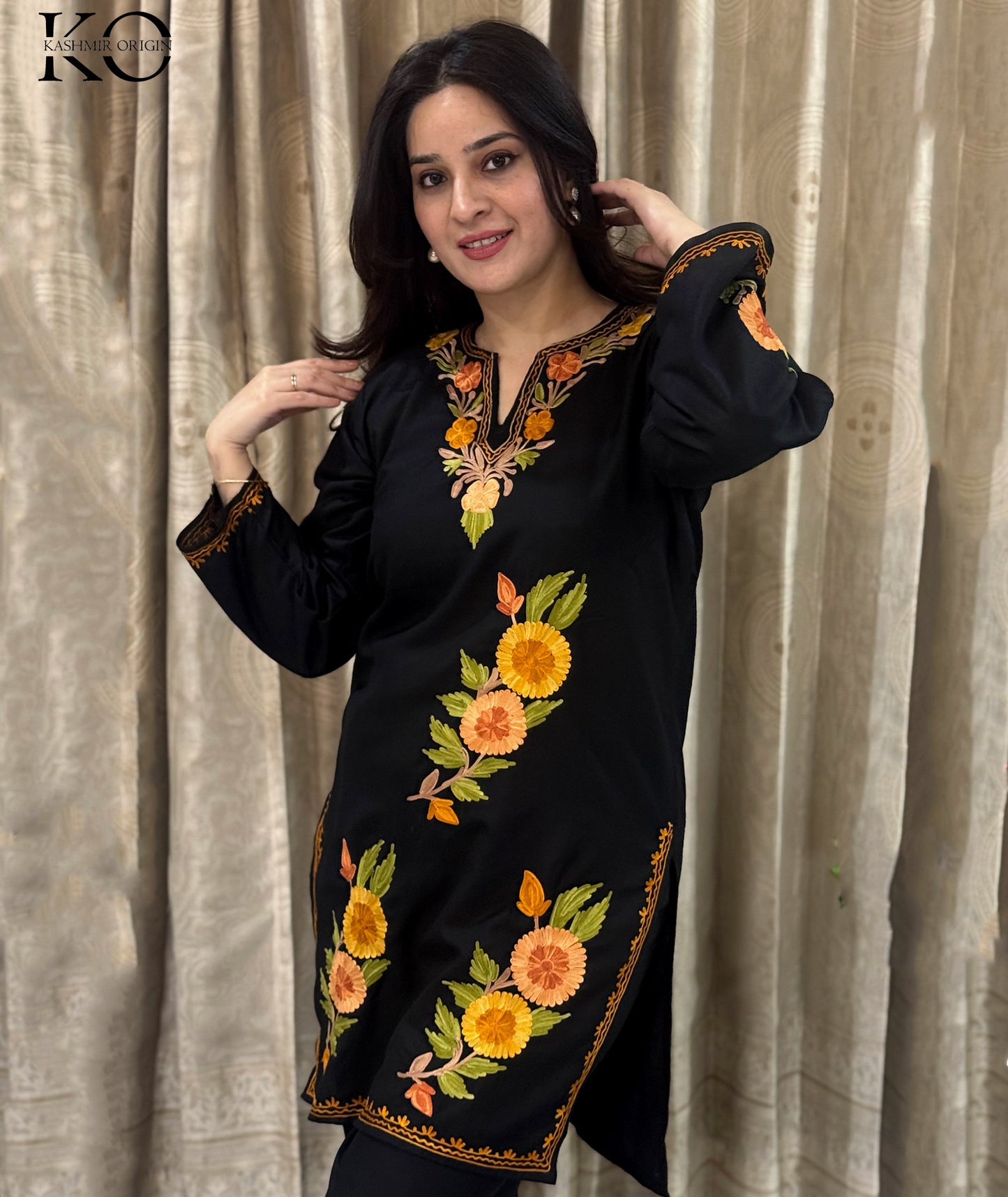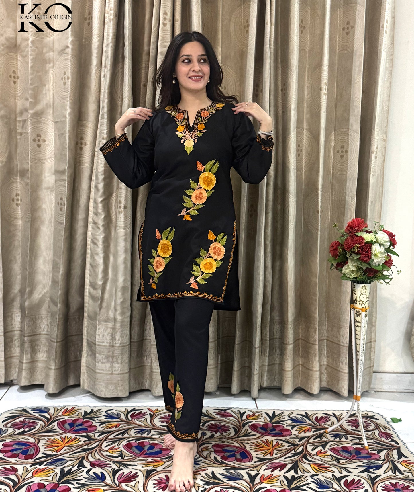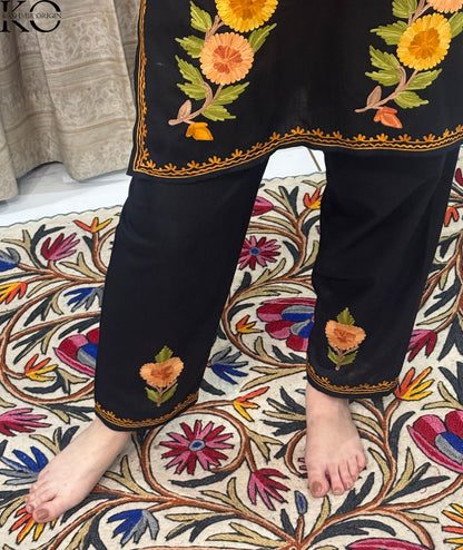 Introducing our best seller Kashmiri Black Yamberzal Aari Embroidered Cotton Co Ord Set. This stunning coord set showcases exquisite Kashmiri craftsmanship with intricate Aari embroidery, making it a perfect choice for any occasion. Made from high-quality cotton, it offers both comfort and style. Elevate your wardrobe with this must-have Kashmiri cotton co ord set that beautifully blends tradition with contemporary fashion. Ideal for everyone looking to add a touch of elegance to their collection.