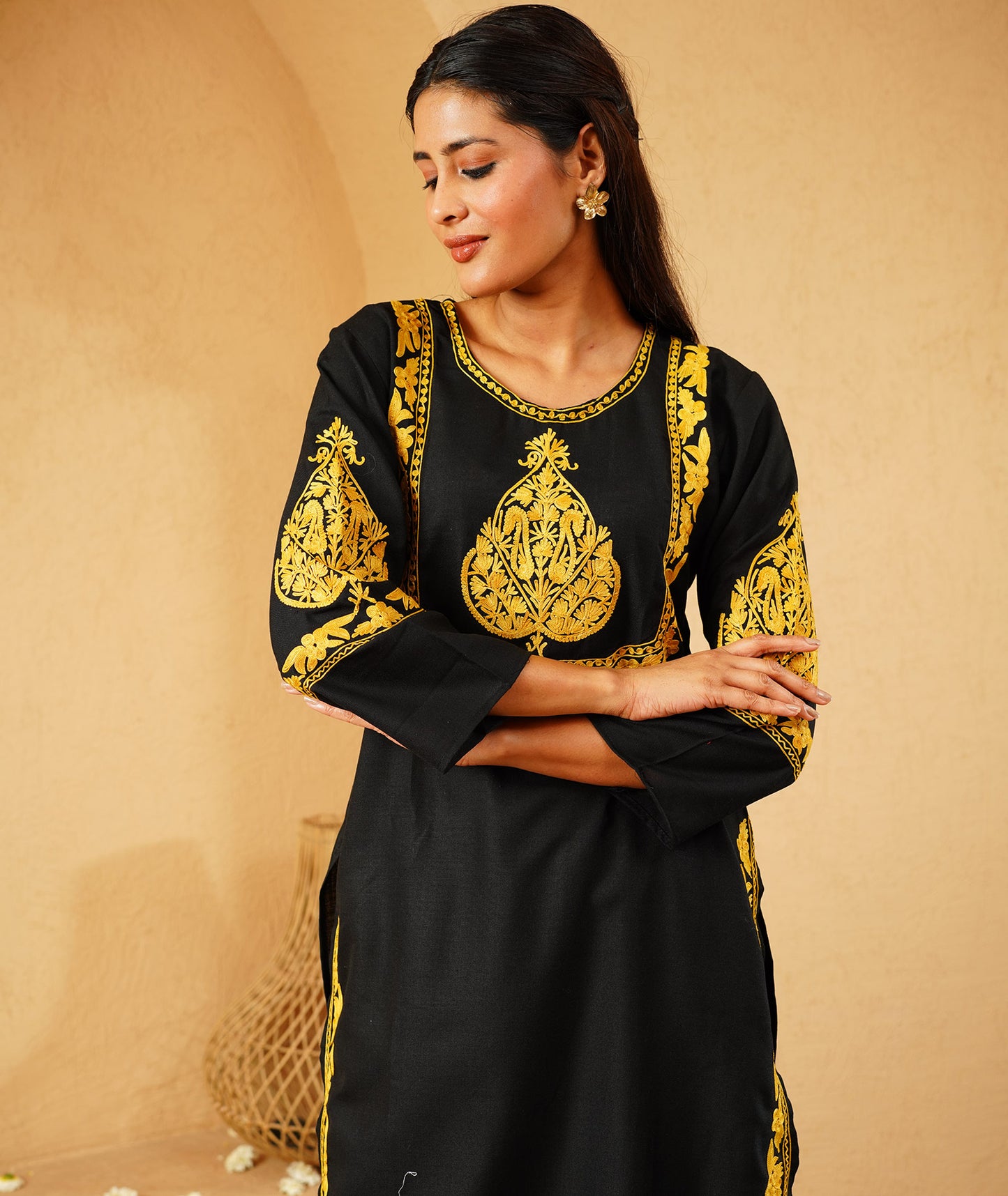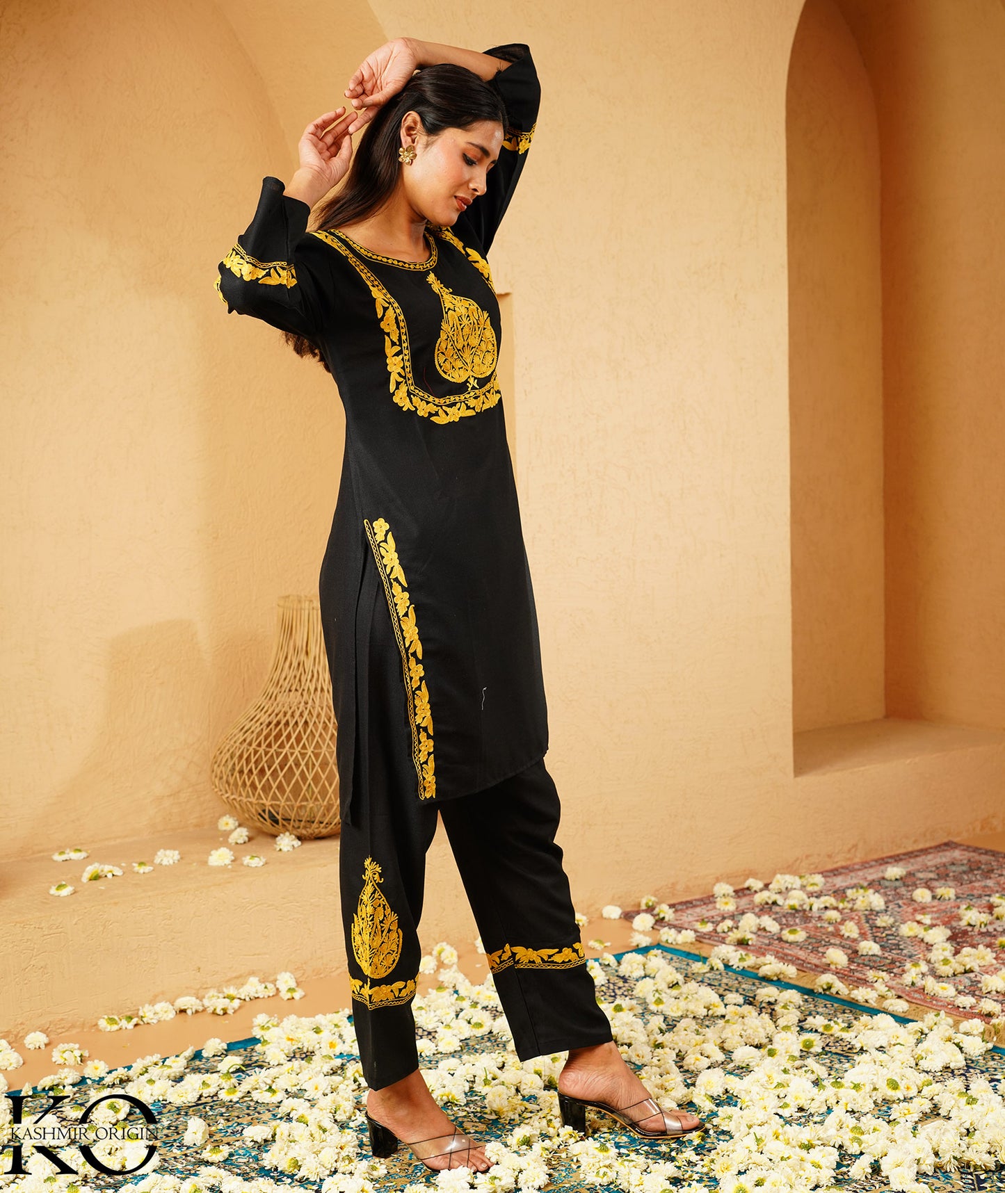 Wear this co ord set to a special occasion or a casual day out, and you are sure to make a statement. It is a must-have for anyone who appreciates traditional craftsmanship and modern fashion. Shop now and add a touch of Kashmiri beauty to your wardrobe!