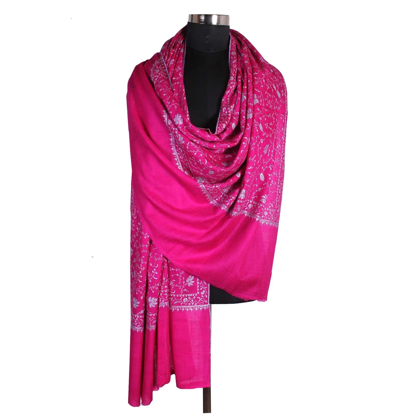 Fast Pink Embroidered jaali Cashmere Pashmina Shawl