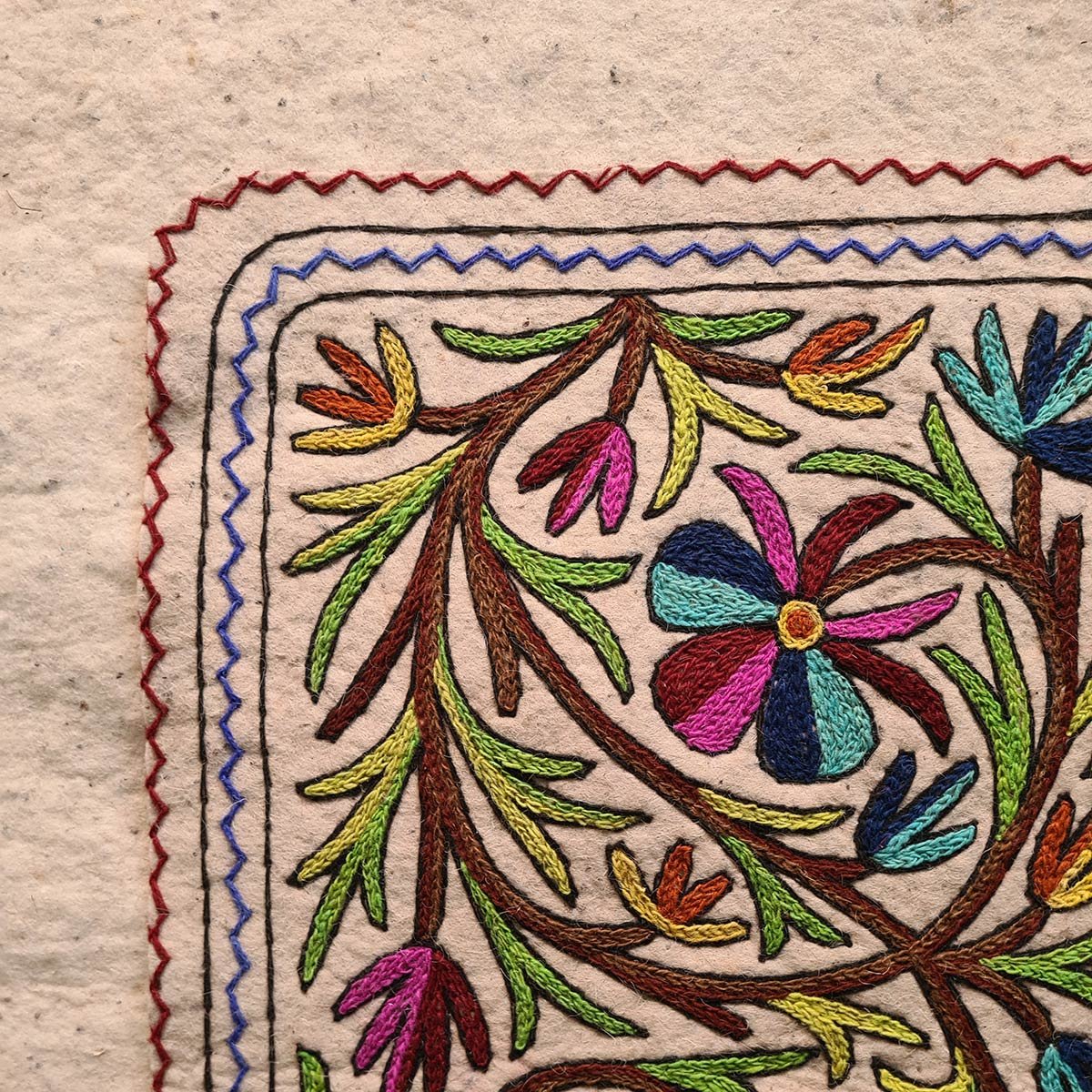 - Product: Handmade Round Aari Embroidered Namda