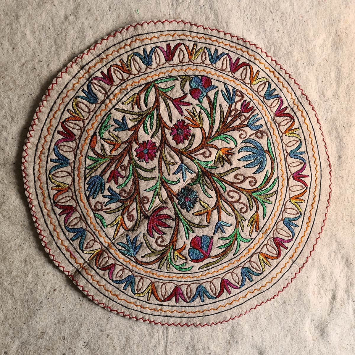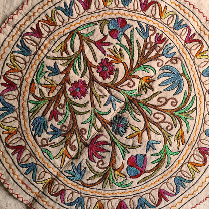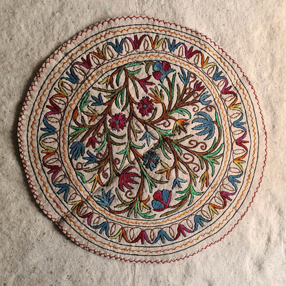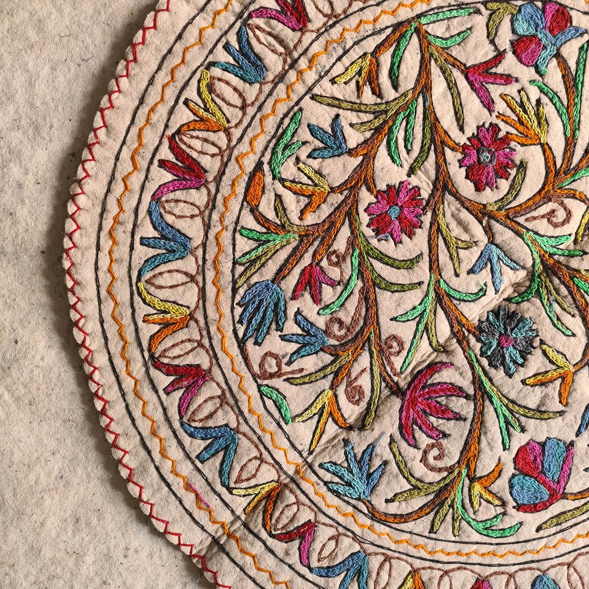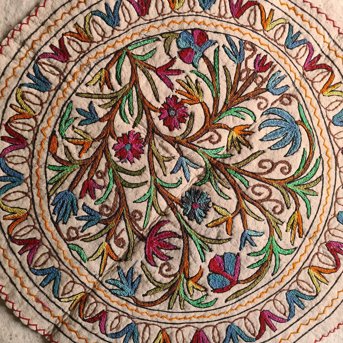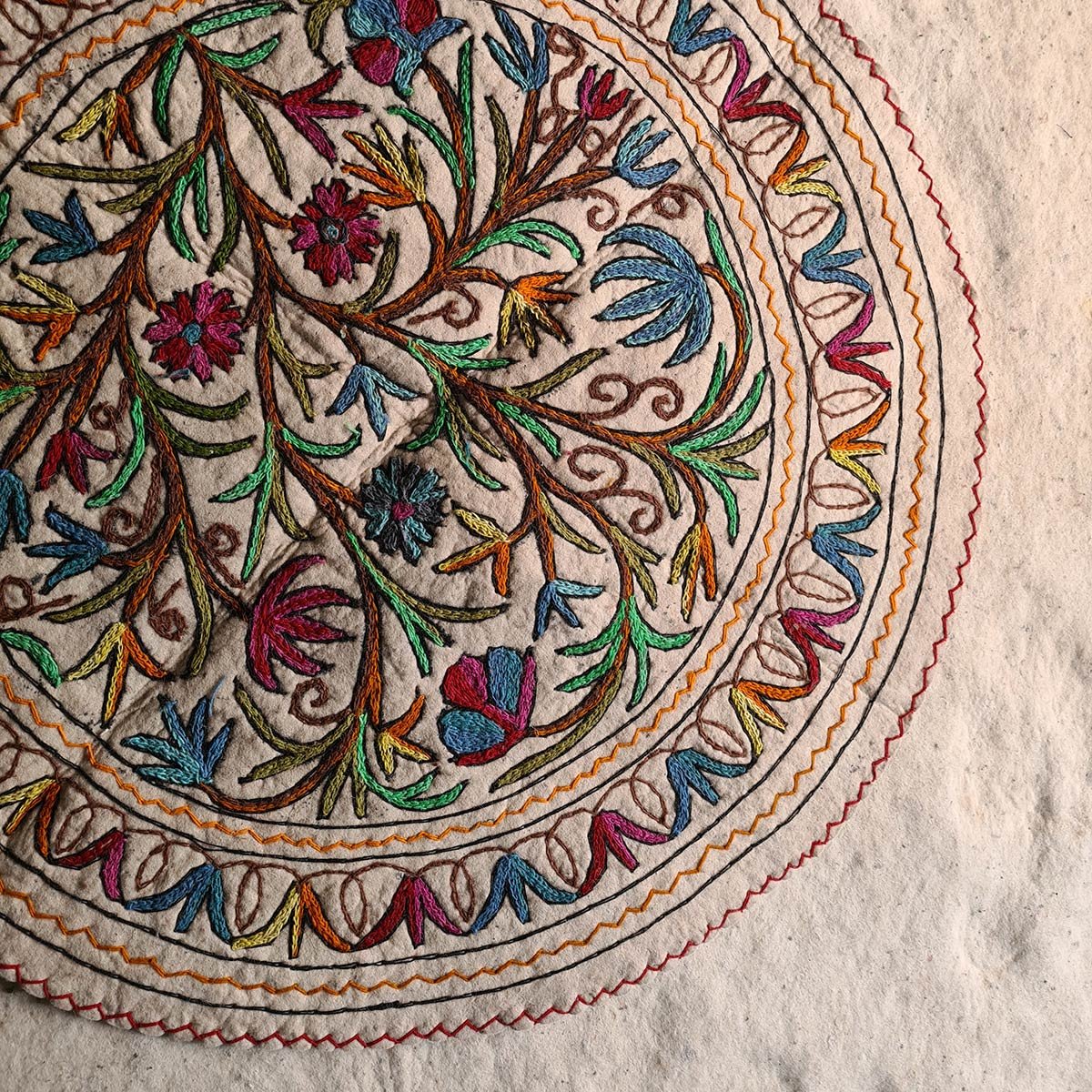 FLORAL DESIGN HANDMADE ROUND AARI EMBROIDERED NAMDA 4x4 FT