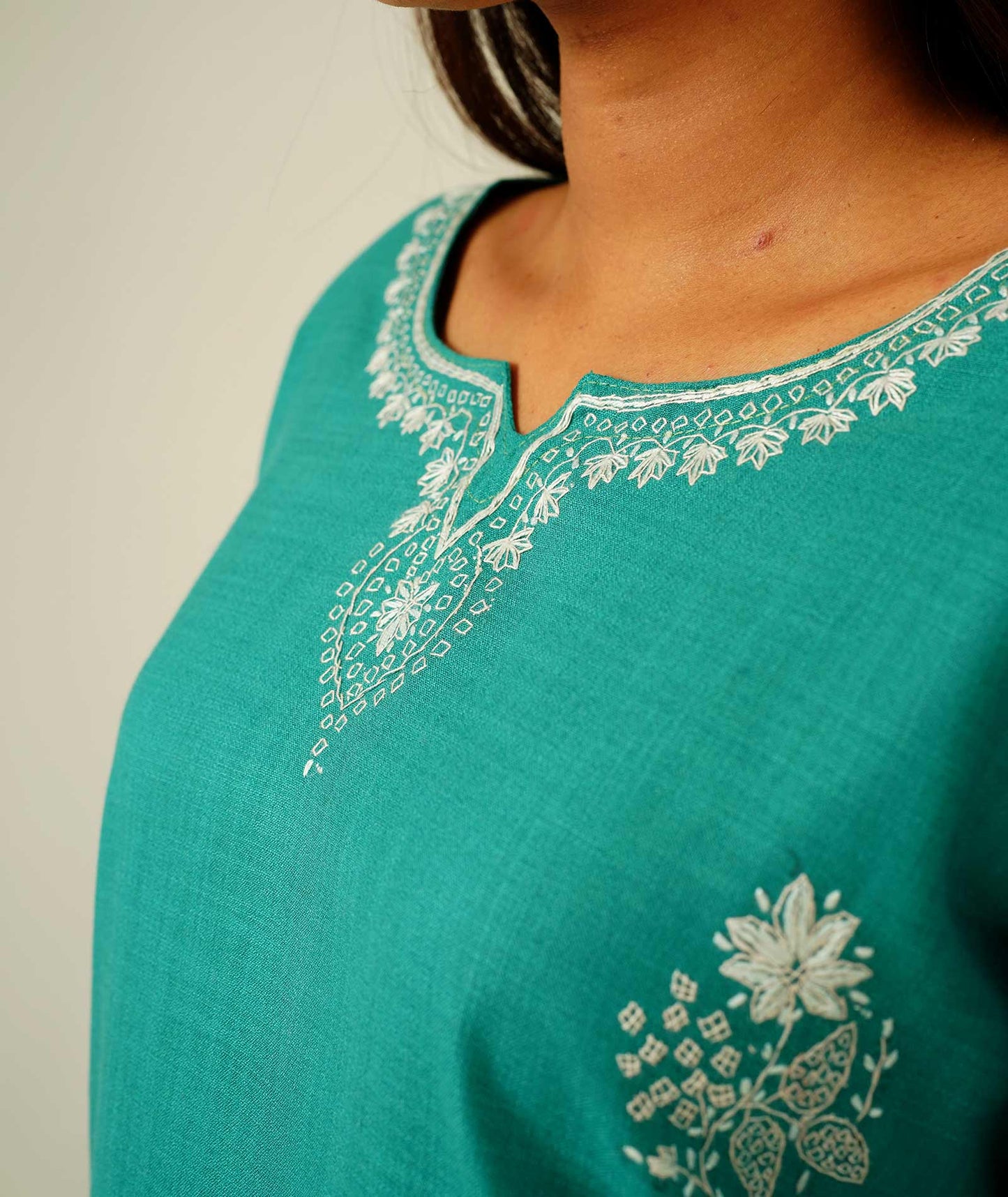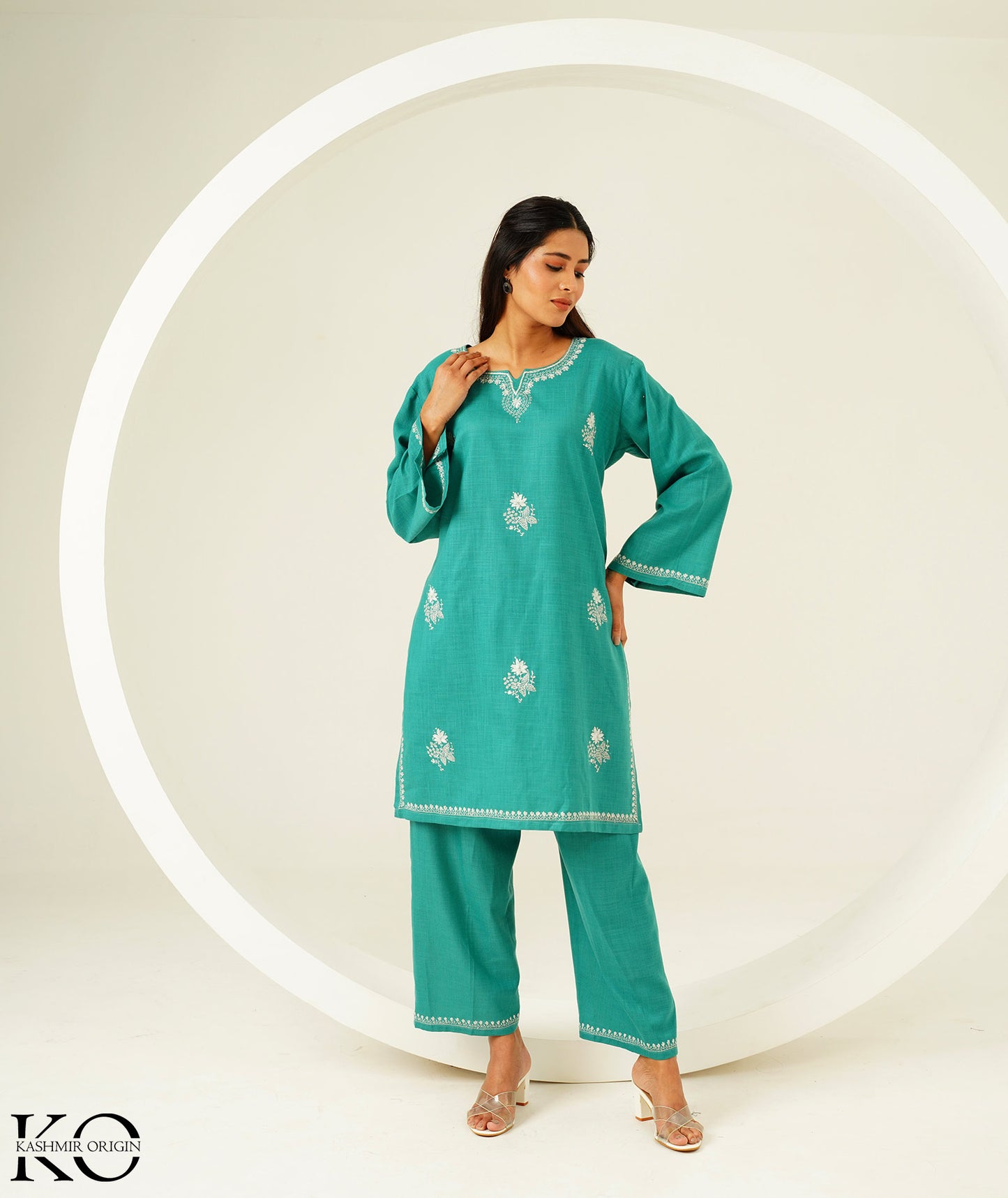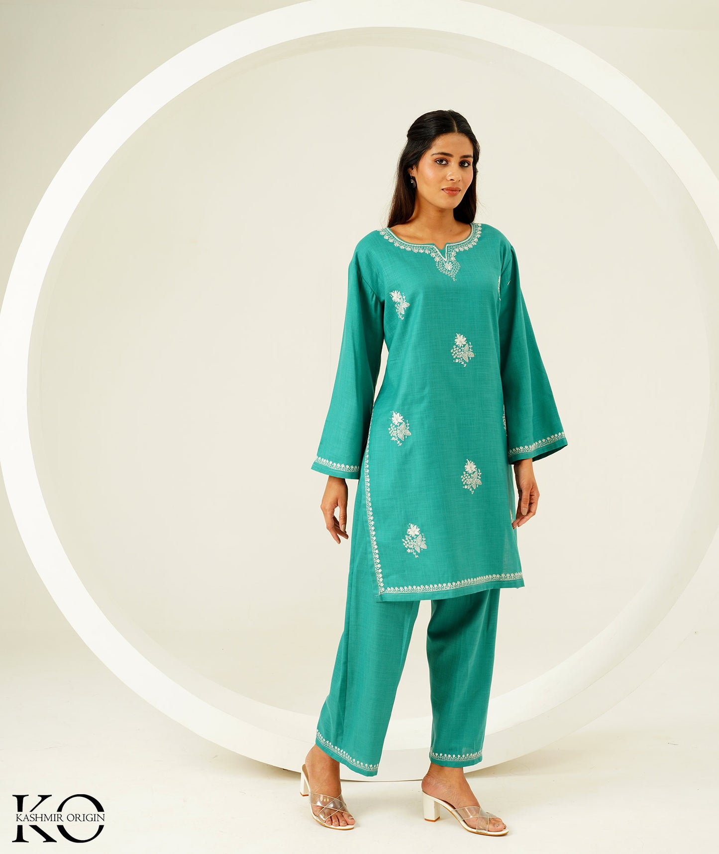 - Fit - Our comfort fitted Hand Sozni Embroidered Kashmiri Coordset is made from soft, breathable fabric and adorned with flawless stitching and traditional Kashmiri embroidery.