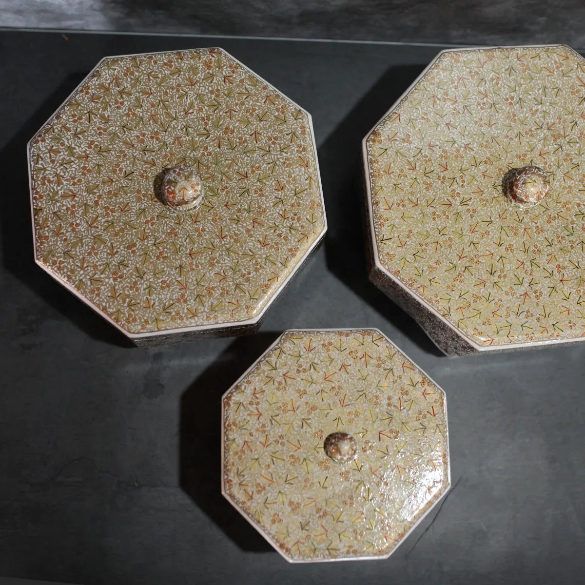 Paper Mache Dry Fruit Box Octa<br> Shaped Set of 3