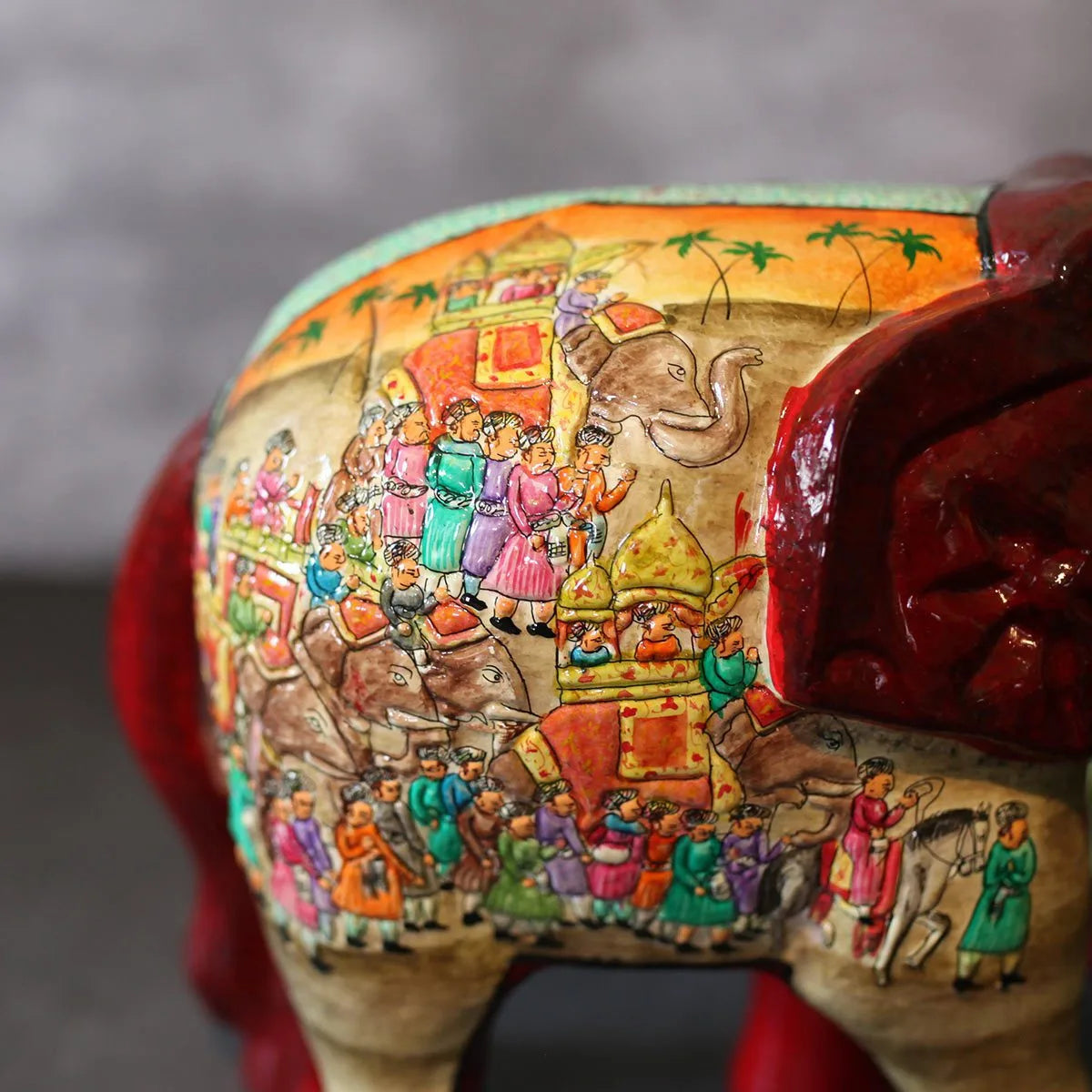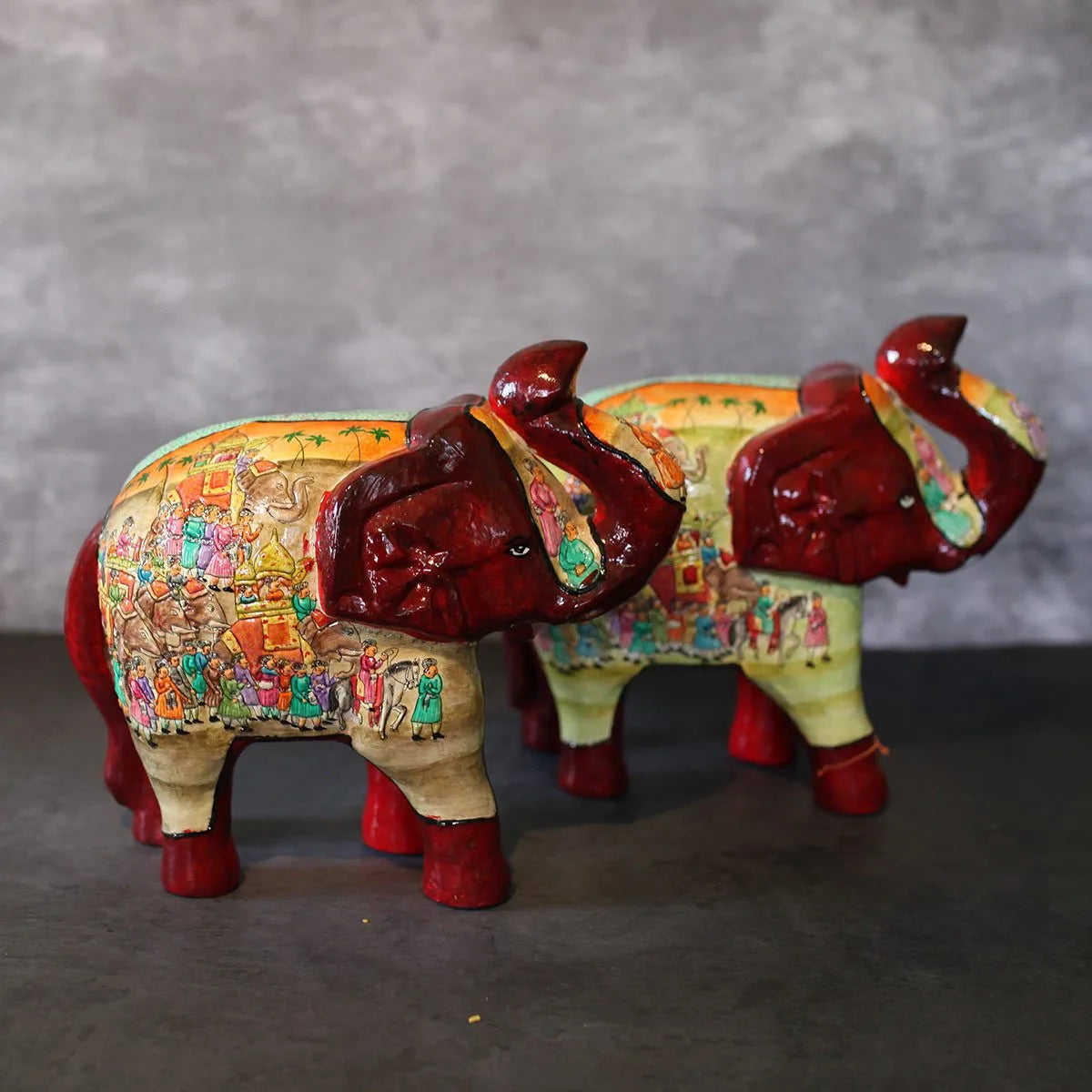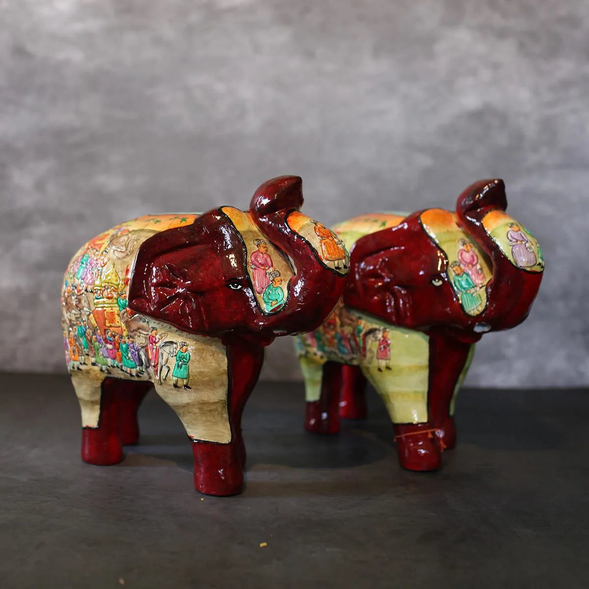 Red Embossed Paper Elephant<br> Mache Mughal Darbar Design Set Of 2