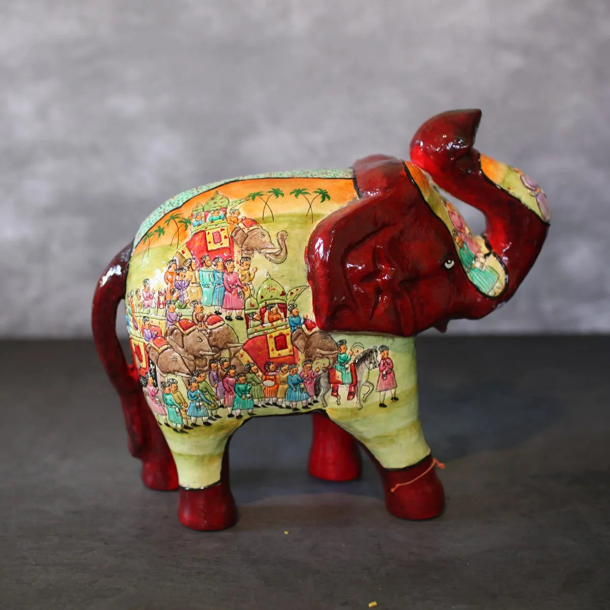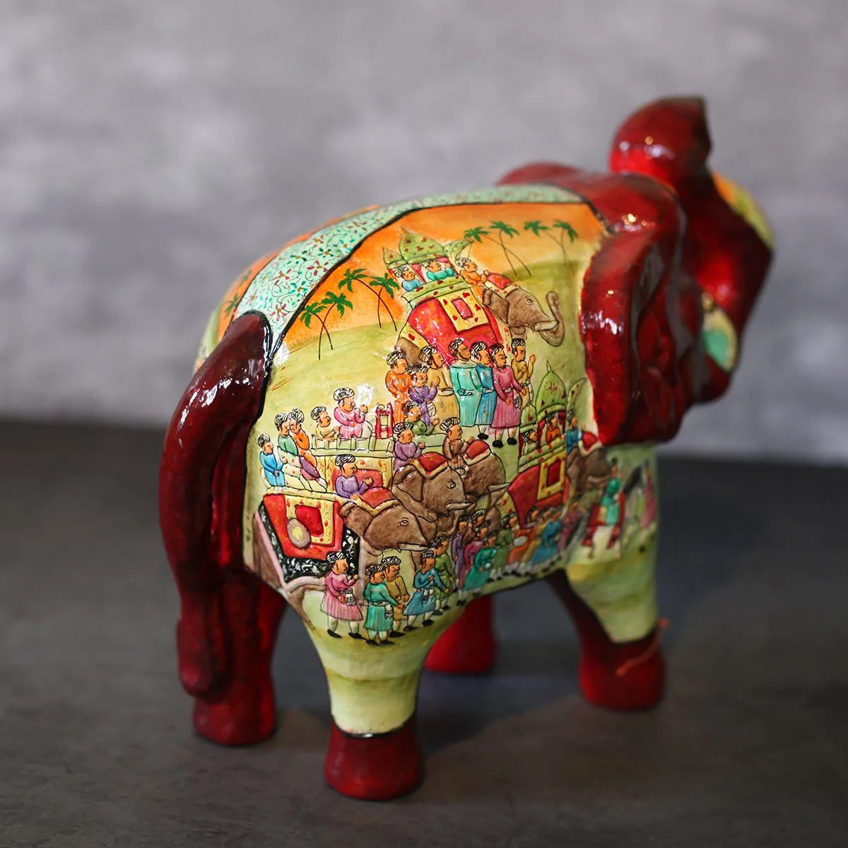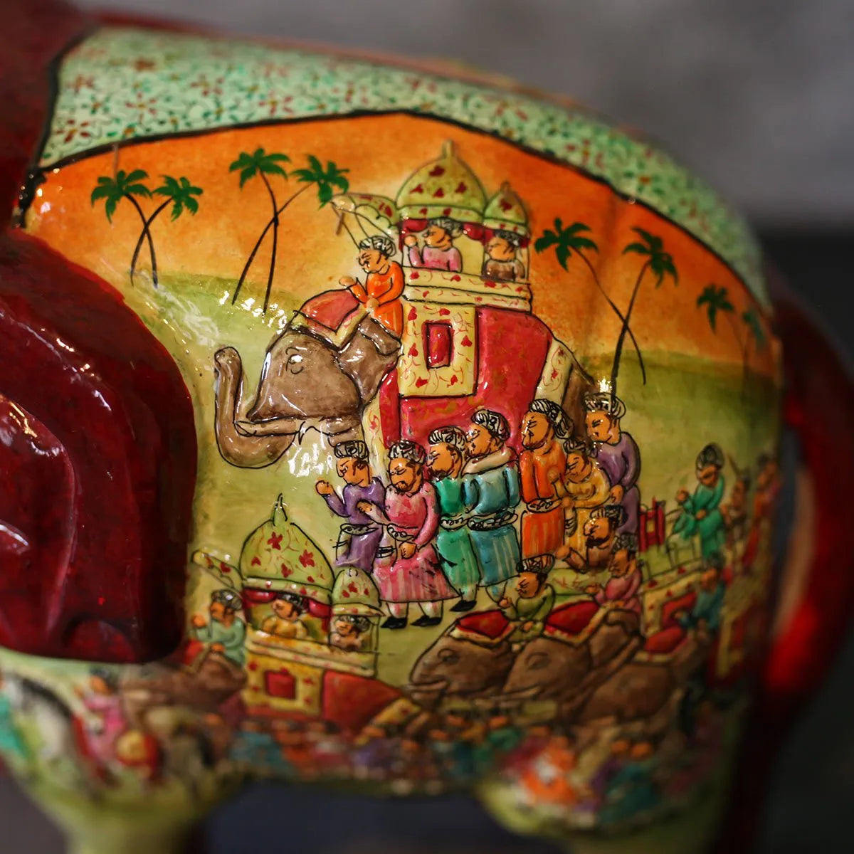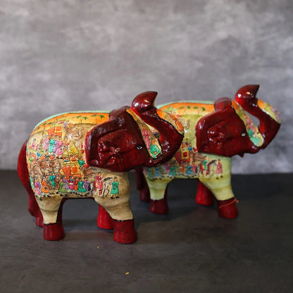 Red Embossed Paper Elephant<br> Mache Mughal Darbar Design Set Of 2