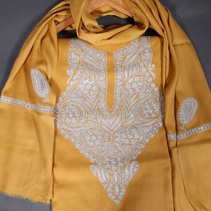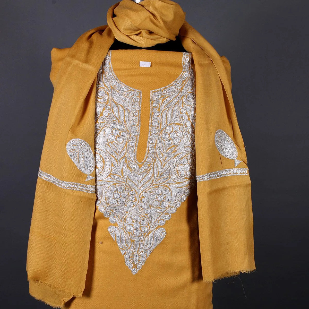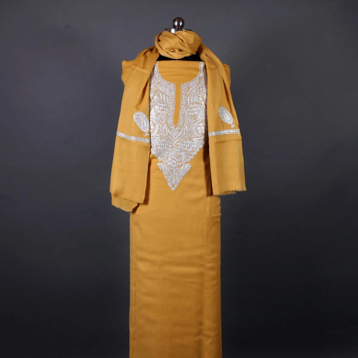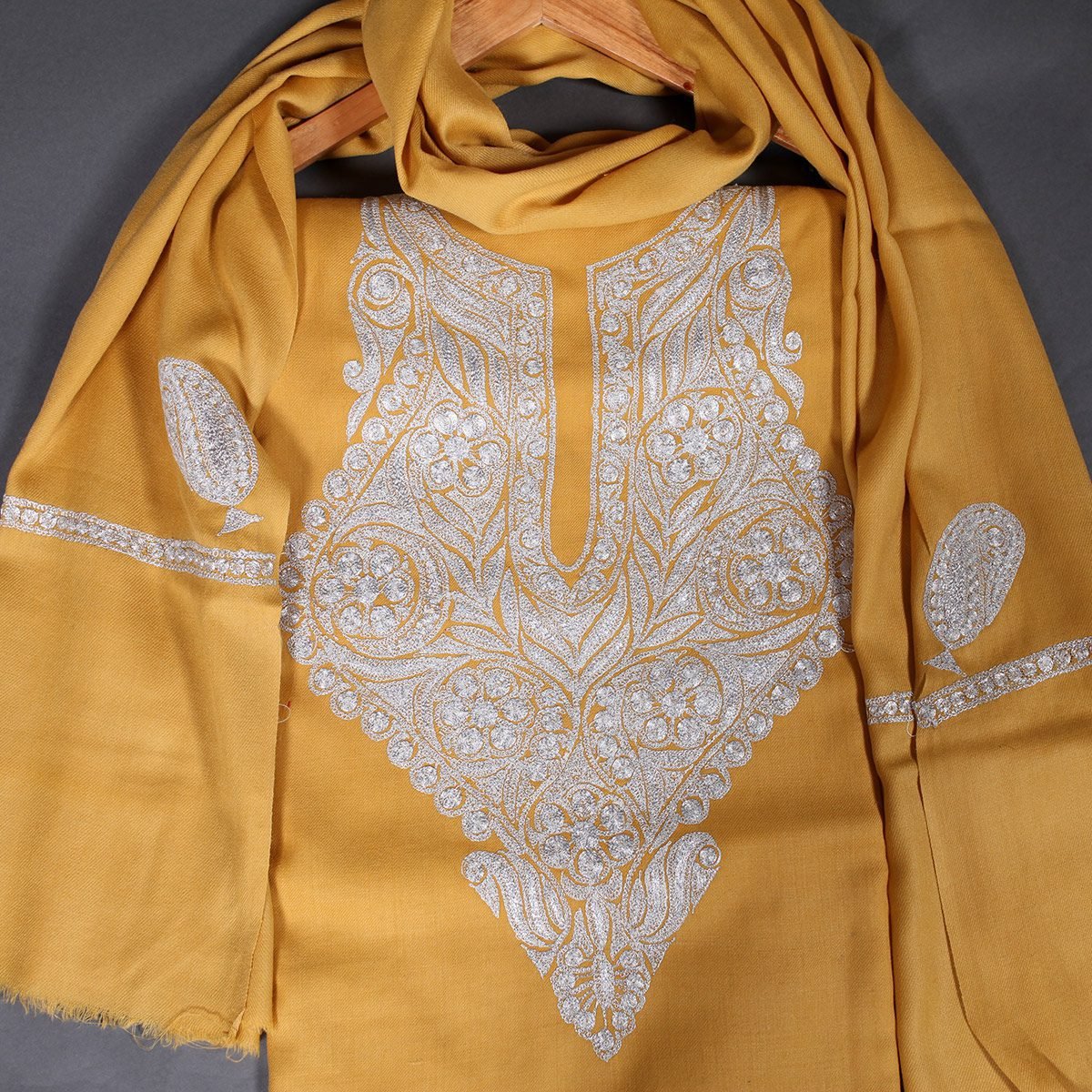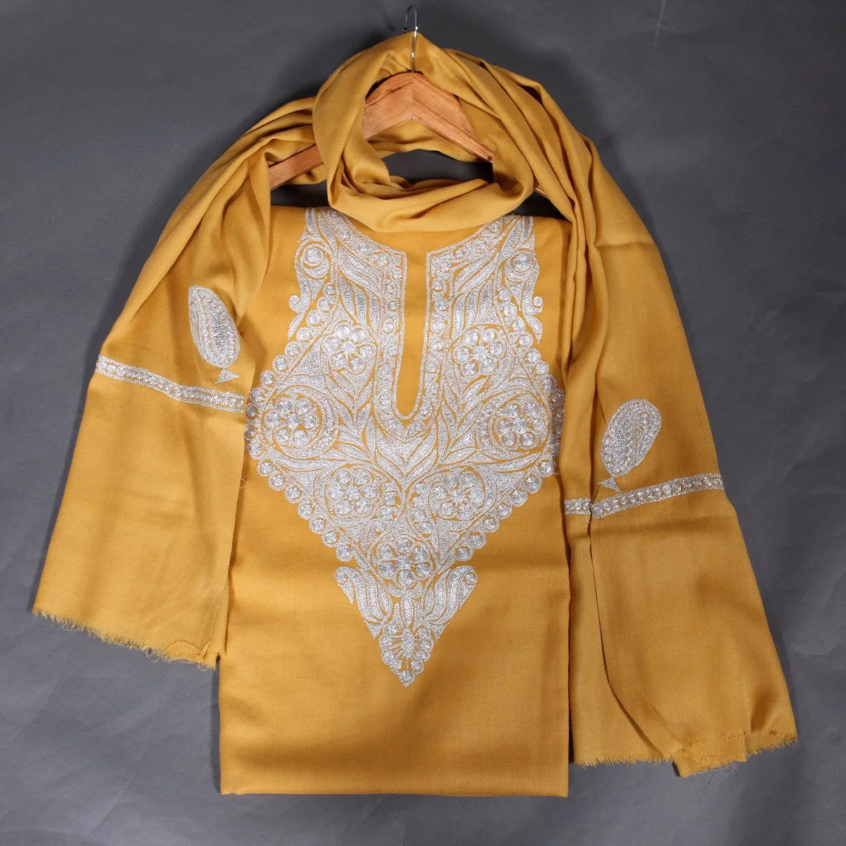 Tilla Embroidered Mustard Woolen Suit With Stole