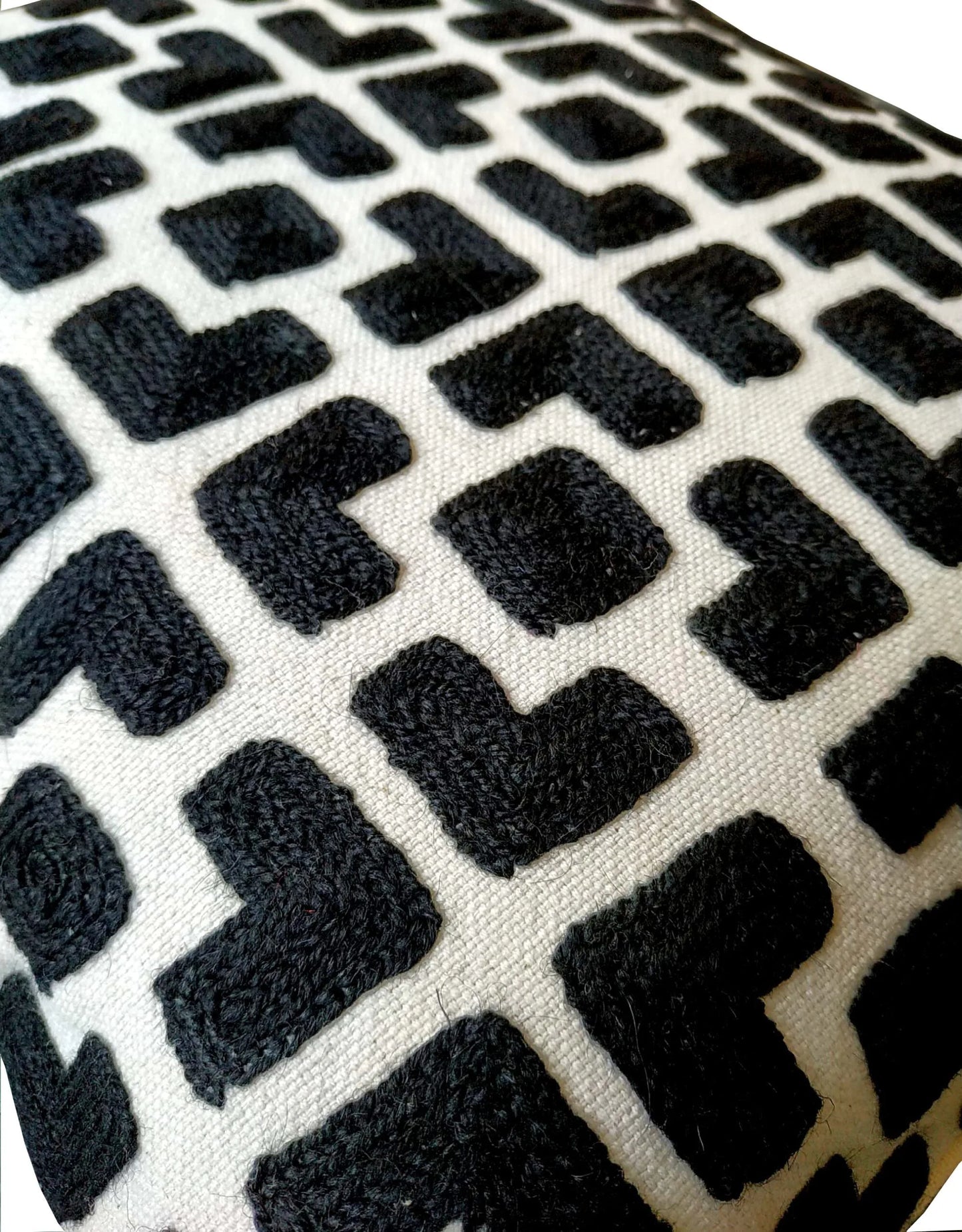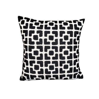 Black Square Hand Embroidered Chain Stitch Cushion Cover 16 x 16 1pc