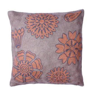 Grey Floral Hand Embroidered Chain Stitch Cushion Cover 16 x 16 1pc