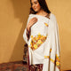An ivory shaded wool shawl captures the regal charm of Kashmiri Mughal gardens with its floral embroidery patterns. The Aari embroidery spans over the borders in captivating hues of mustard, amber, olive, adding a fresh gold warmth to the pristine white base. The fine wool base feels luxuriously light yet pleasantly warm, making it a perfect blend of comfort and style. Each thread tells a story of timeless art, echoing the floral meadows in every fold of this luxury shawl.