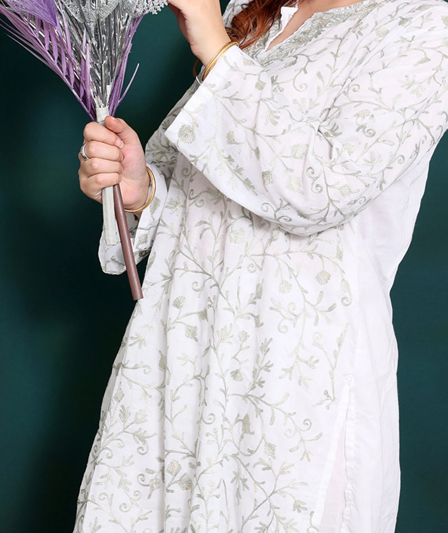 Jaali Design Aari Embroidered white Cotton Co ord Set |Full Suit
