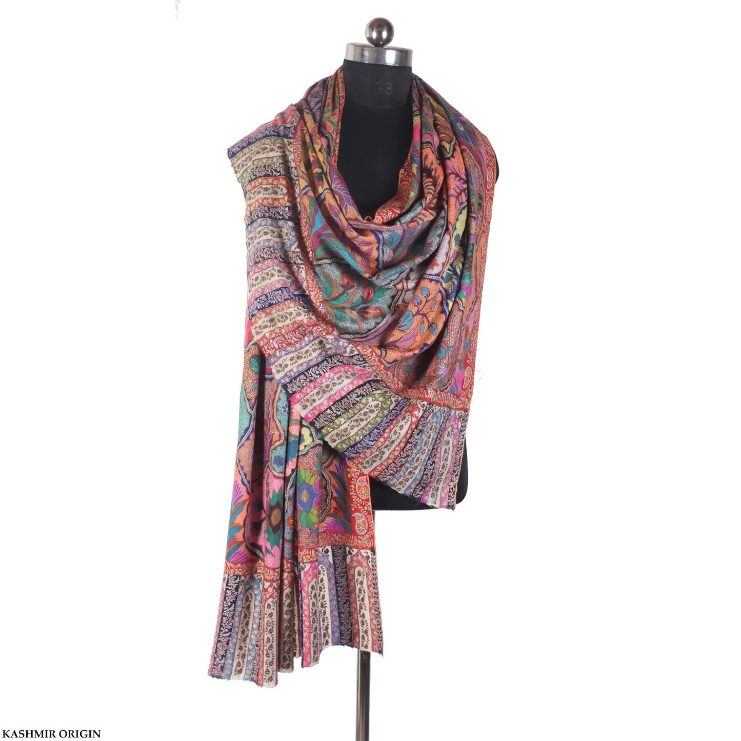 Kalamkari Design Sozni Embroidered Cashmere Pashmina Jamawar Shawl