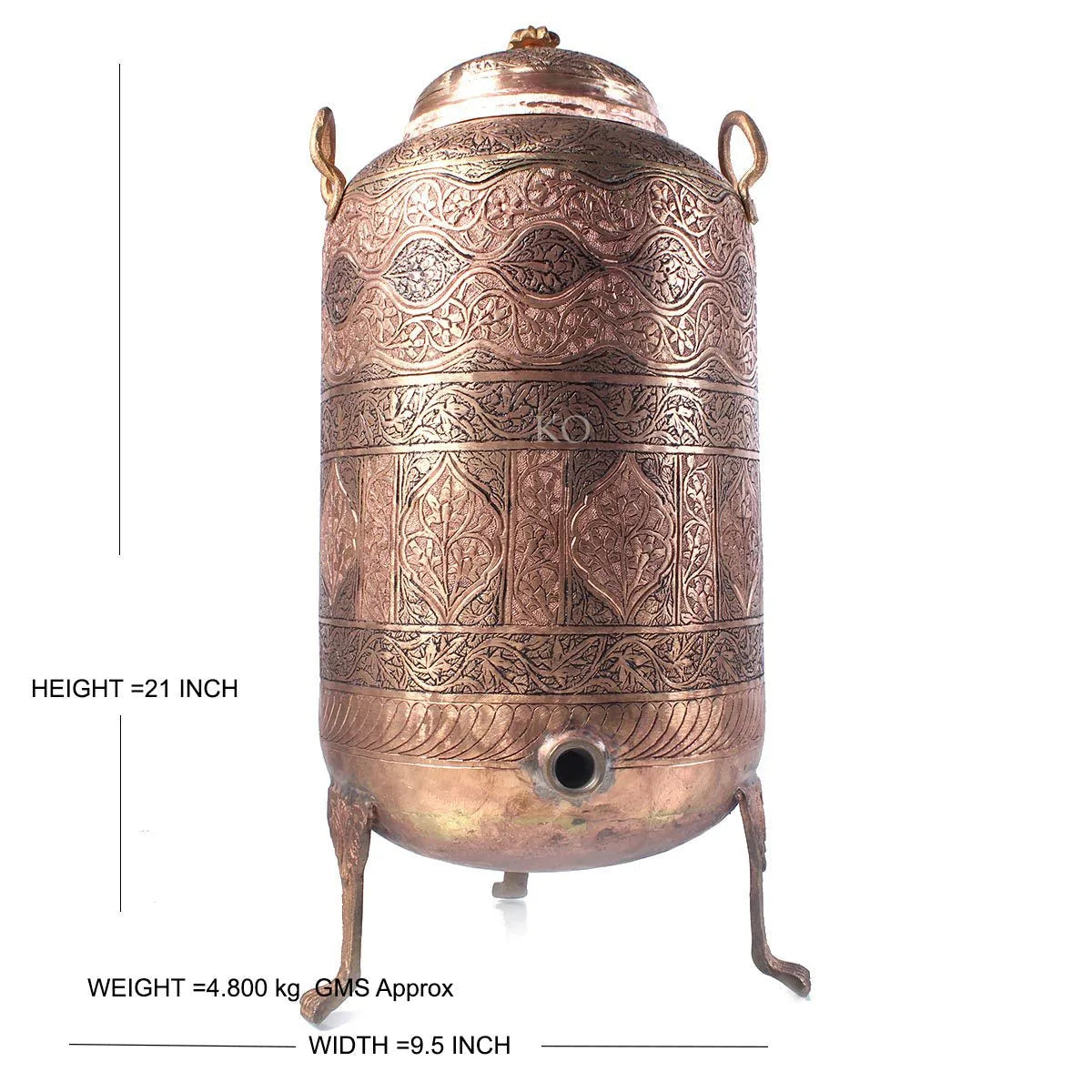 Kandkaer Copper Water Dispenser| Intricate Design| Hand Engraved