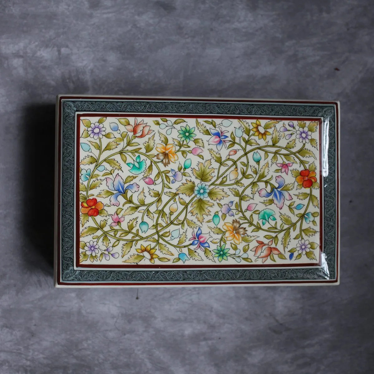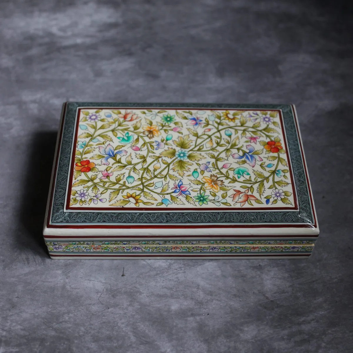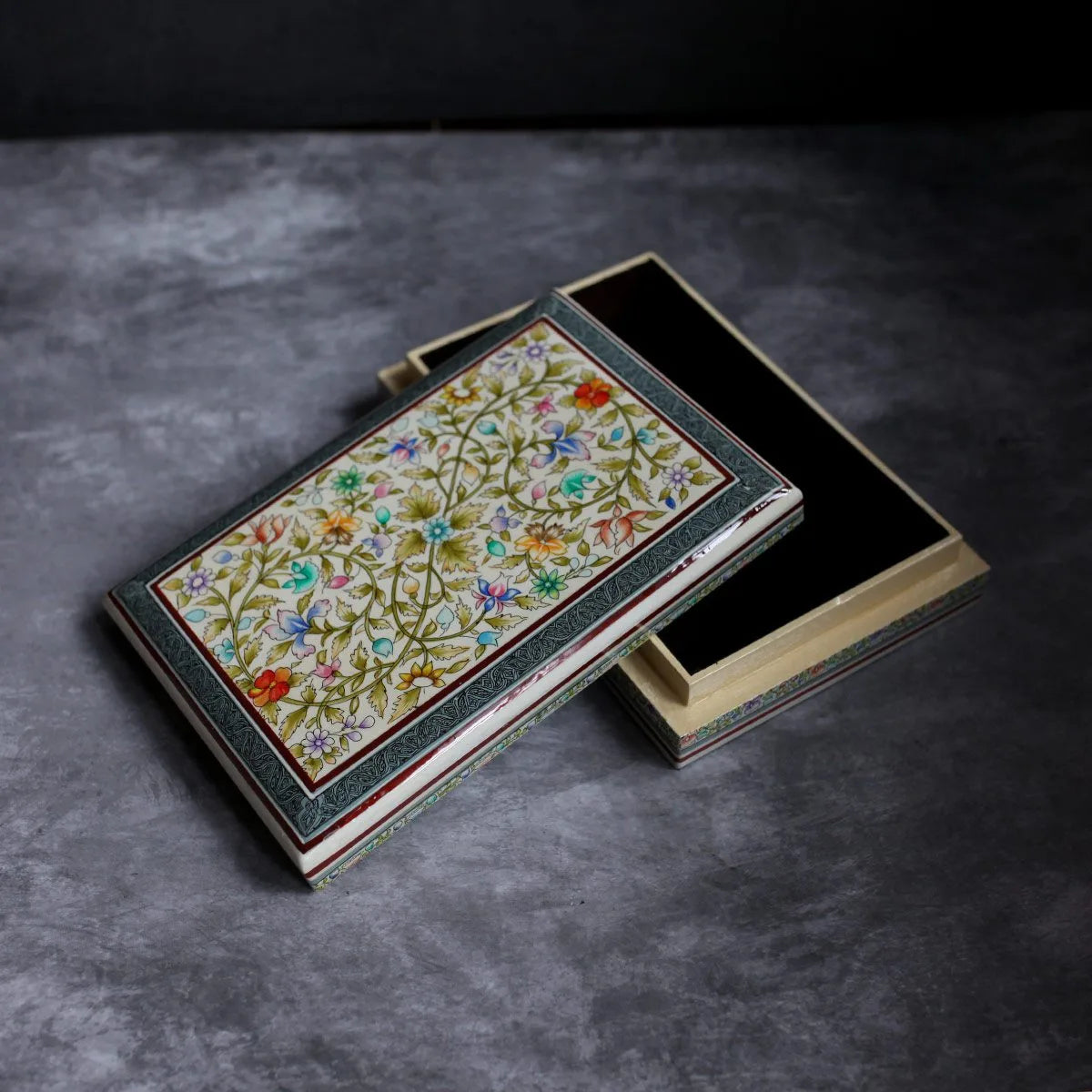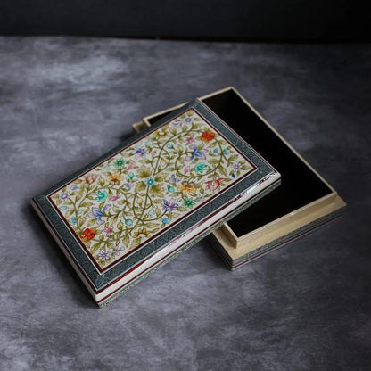 Kashmiri Flower Design Handmade Paper Mache Box Meter box | Flat Box | Intense Design kashmir Art