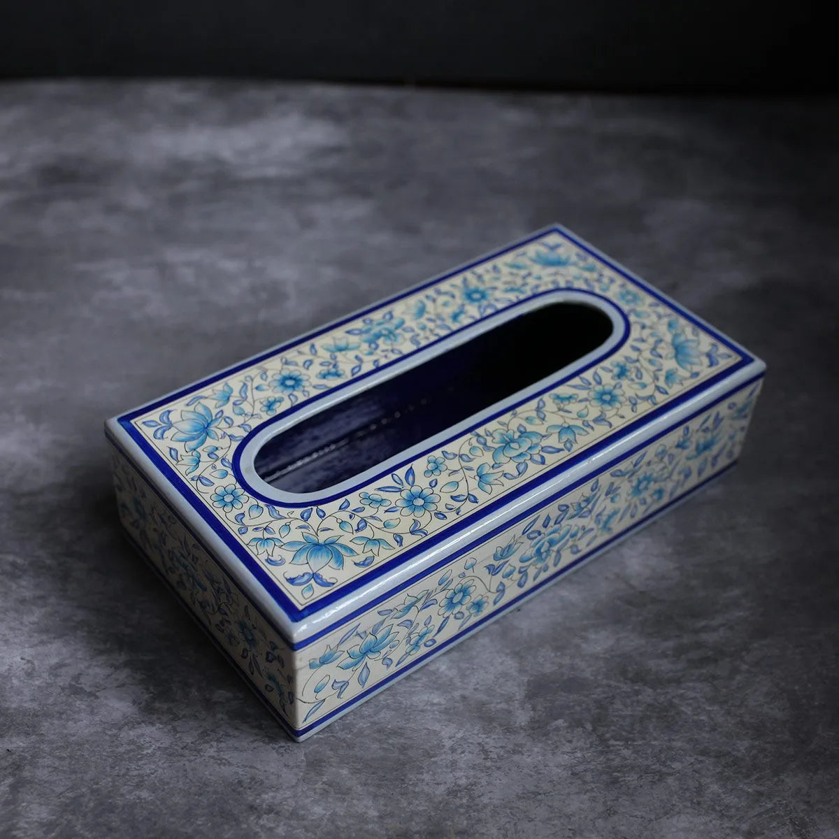 As the Naqash hand paints his latest masterpiece, blue base tissue box, the box shimmers, accentuating its surroundings in a way that allures the onlookers. The box is hand crafted in the magical Paper Mache craft, in a subtle cream white base, over which colourful little birdies sing the praises of the paradise that they belong to. An ideal gift for housewarming, the box will be loved by the one whose taste of art is the most classy.