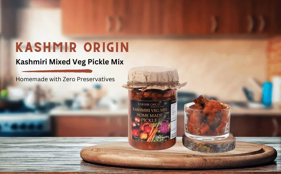 Experience the authentic taste of Kashmiri cuisine with our vegetable mix achar and savor the rich flavors and nutrition of this unique pickle.