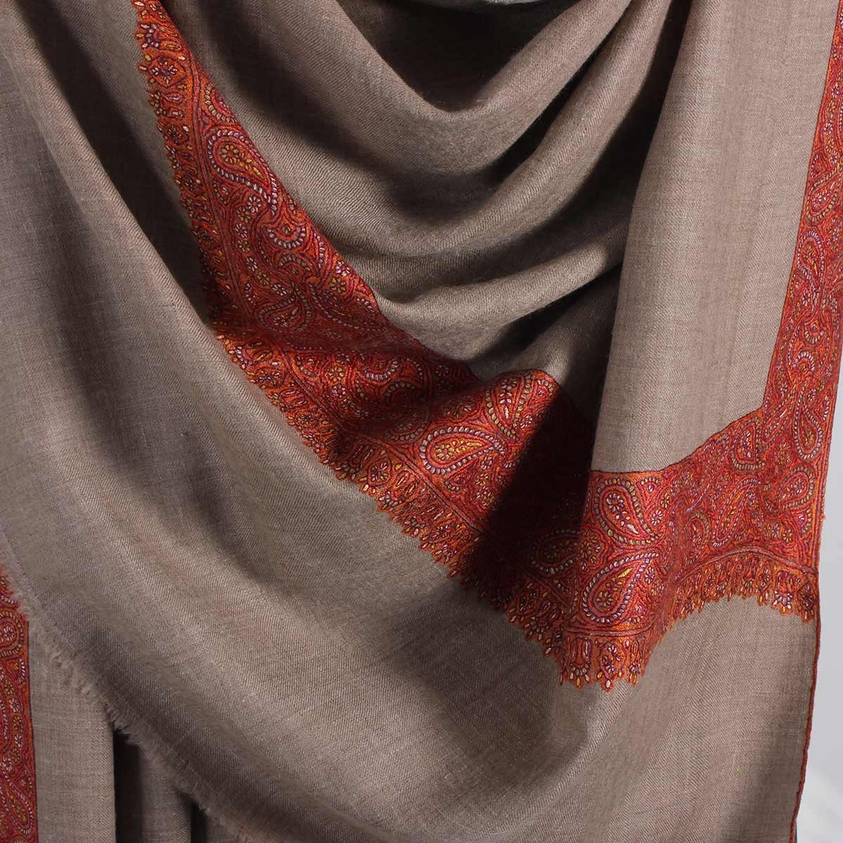 Khudrang Base sozni Embroidered Dordaar Pashmina Shawl