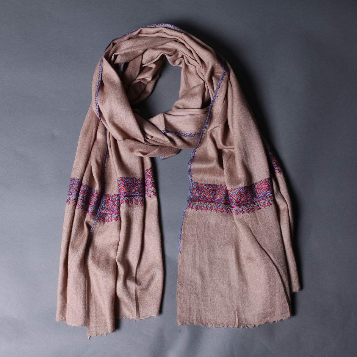Kashmiri shawls made out of pure Kashmiri wool are called Toosha shawls. Toosha is the pure wool which is woven to obtain these wondrous winter shawls, perfect for the gelid season. These pure wool Kashmiri shawls come in all designs and patterns to keep you warm and comfortable in winters. Designed artistically by craftsmen of utmost skill, the shawls are hand embroidered in Kashmiri Sozni Needle work embroidery in the most beautiful fashion. Inspired by motifs like paisley, floral and Kalamkari prints, these shawls are a must have for winters and fall.