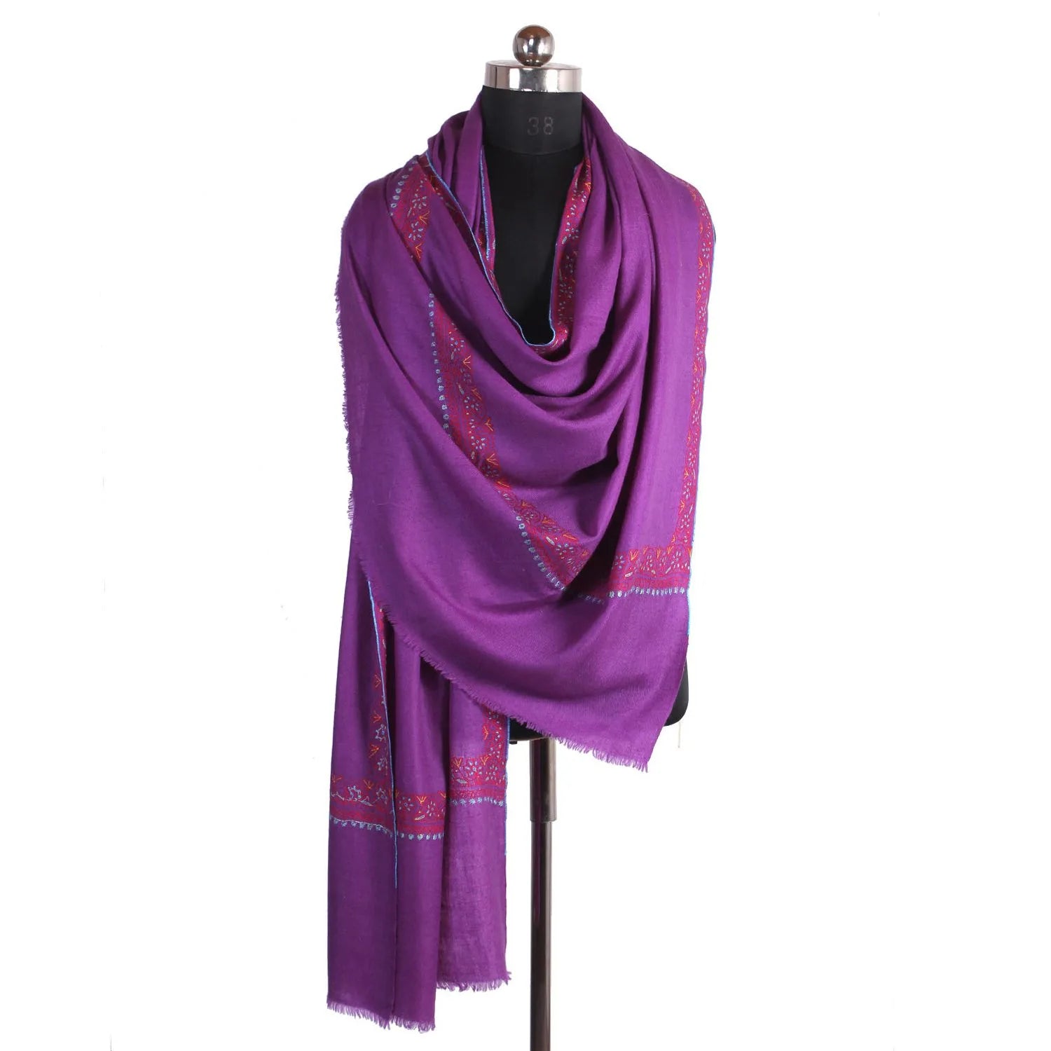 Lavender Purple Sozni Embroidered Cashmere Pashmina Shawl