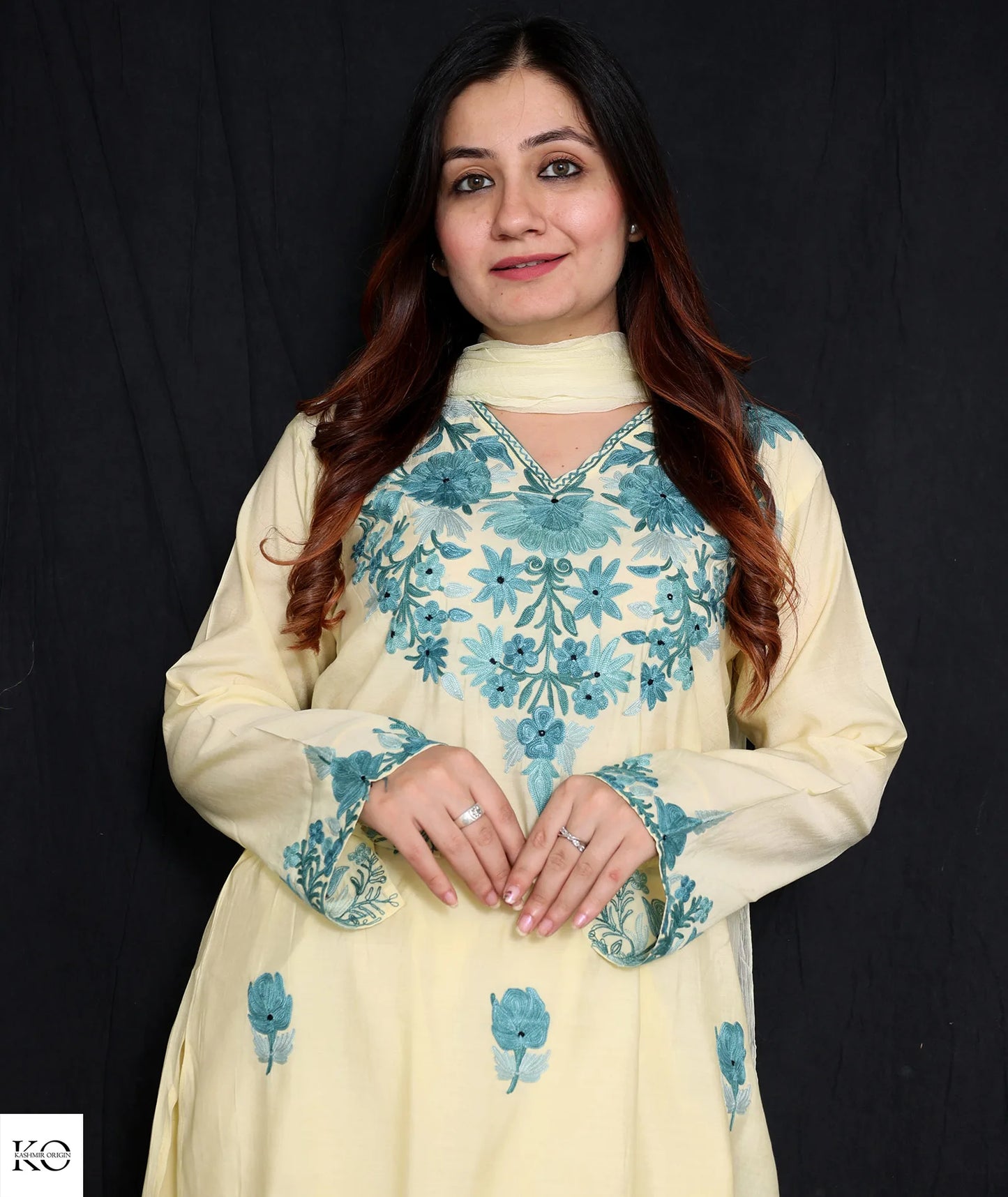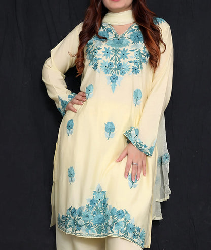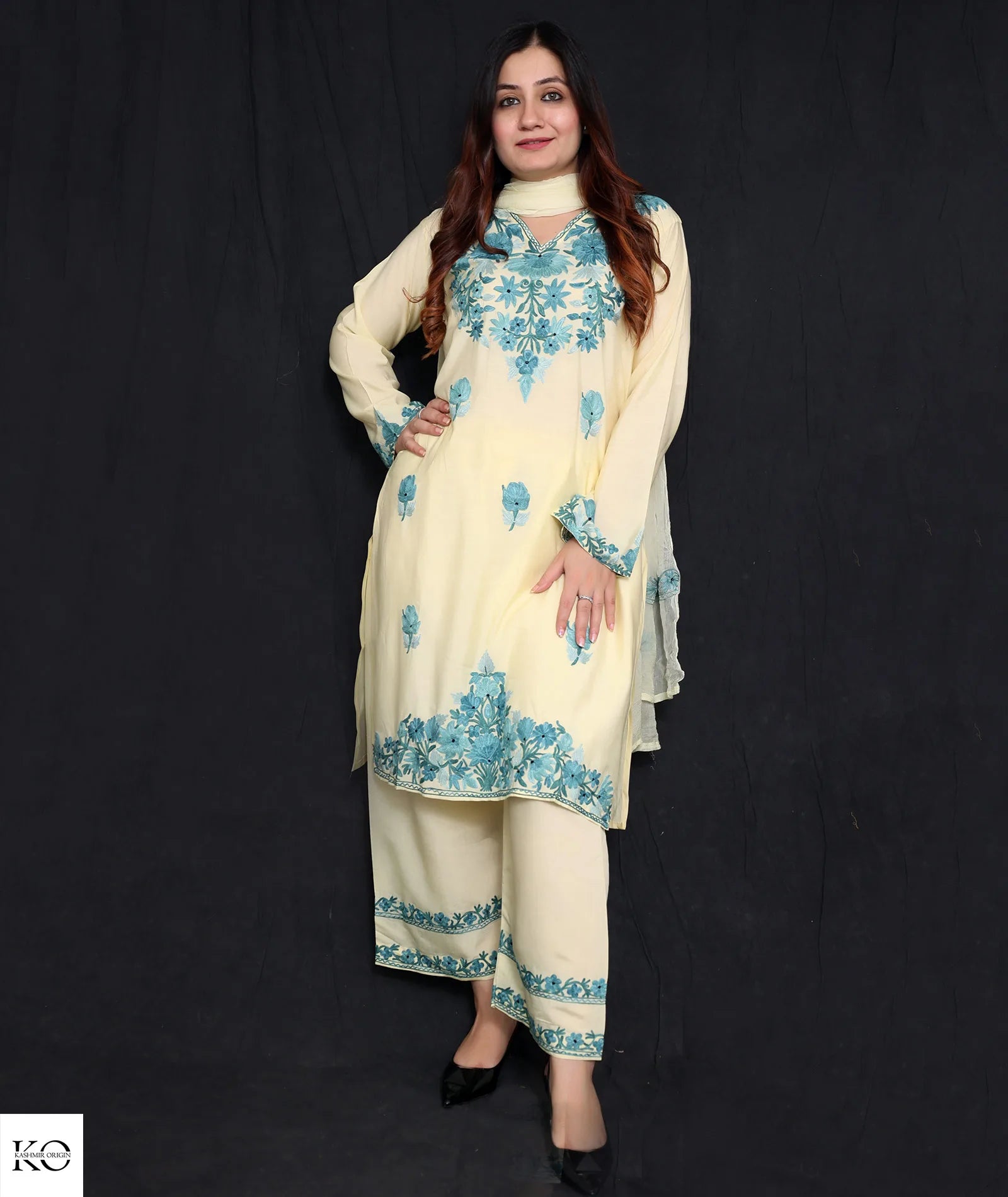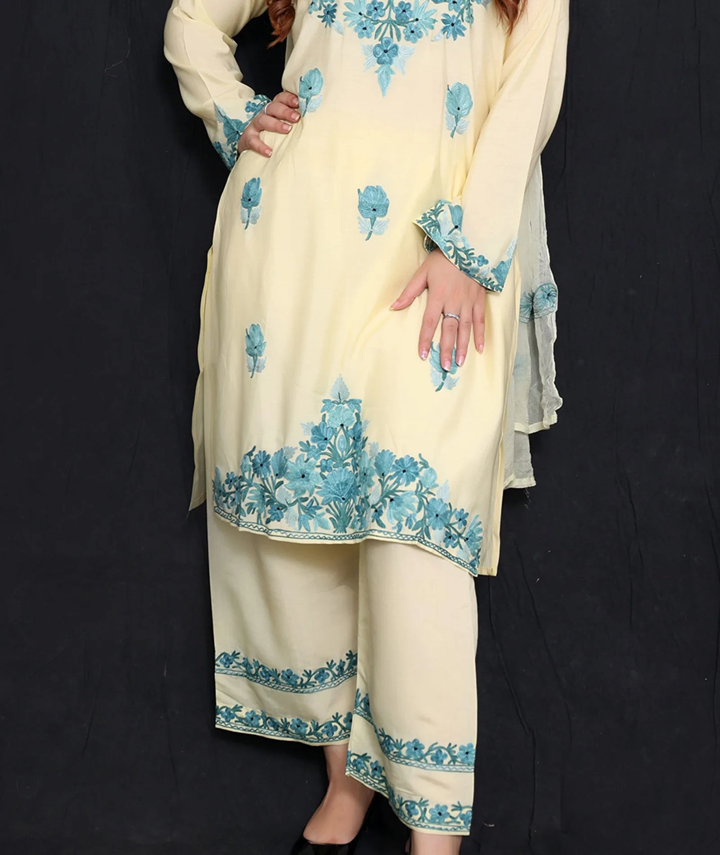 Lemon Silk Crepe Embroidered Suit With Dupatta