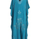 For the lovely you a pretty stylish silk kaftan with enhancement of fine Aari Embroidery, The front of the Kaftan is done in the aari Work of flowers and vine. The back of the Kaftan comes in the same singlet flower and vine motif which adds to the overall look of the Kaftan. The dress is ideal to wear on a casual summer day or as beachwear summer day when all you want to feel is the coolness of a fabric against your skin. The embellishment follows an elaborate process starting with the Naqash who traces nature inspired motifs over plain pieces of cloth. The imprinted fabric is then passed onto a Artisan who uses a specialized hook called Aari, to embroider it. Typically done on suits, shawls and bags, Aari kaem works its colorful charm on a plain drape and inspires in it a lively ethnic appeal.