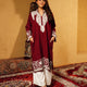 Maroon Aari Embroidered Mandarin collared neck Design Woolen Kashmiri Pheran