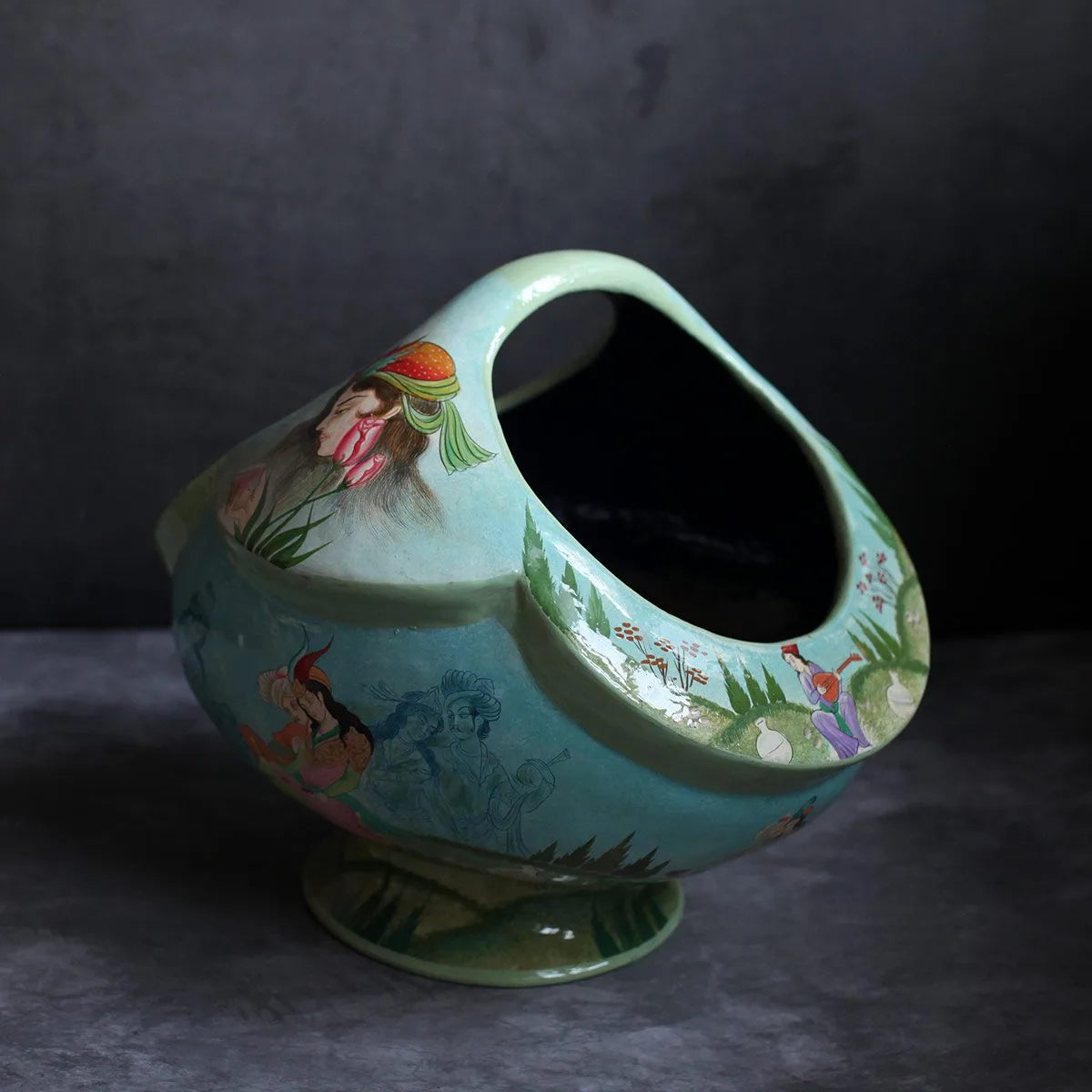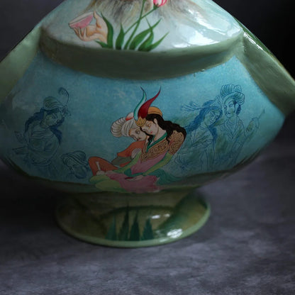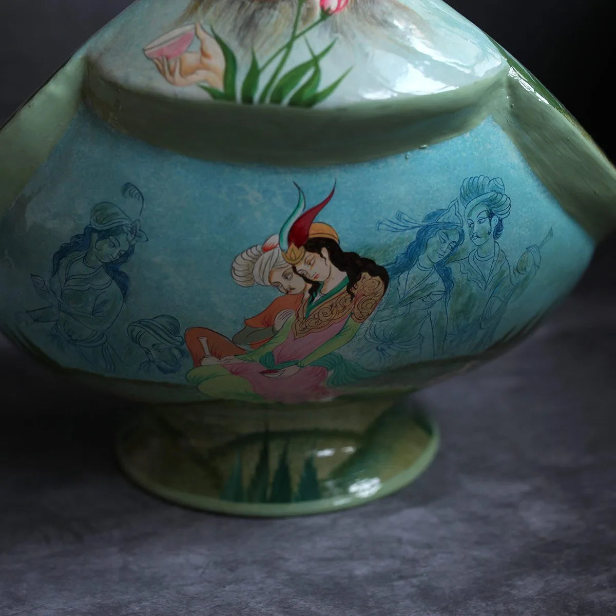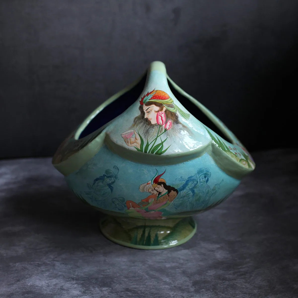 Mughal Painting handmade Paper Mache Basket | Fruit Bowl |16 x 14 INCHES | Kashmiri hand painted basket | Kashmir Art