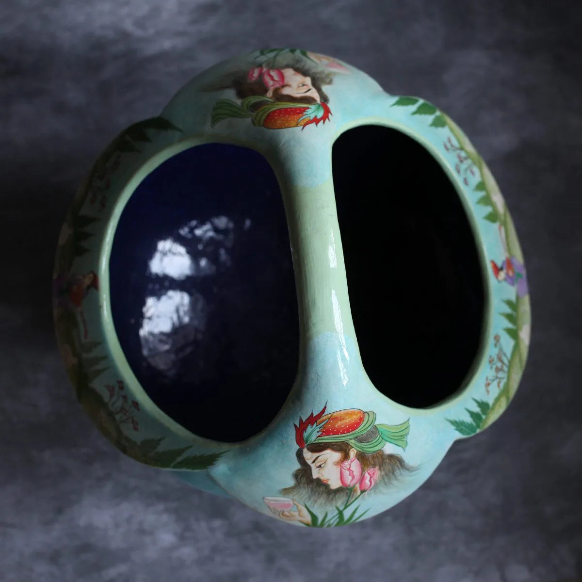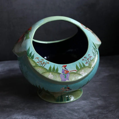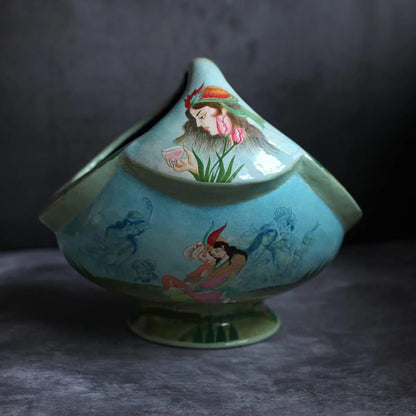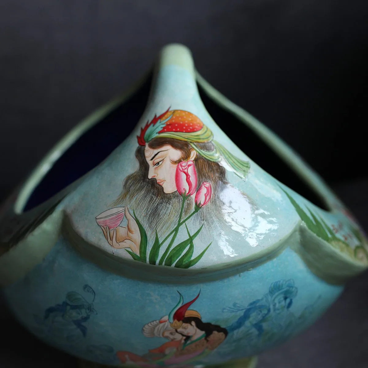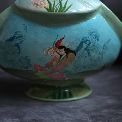 Mughal Painting handmade Paper Mache Basket | Fruit Bowl |16 x 14 INCHES | Kashmiri hand painted basket | Kashmir Art