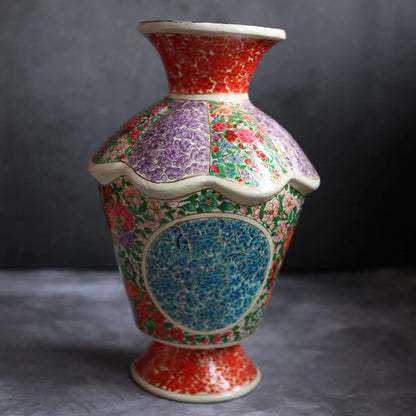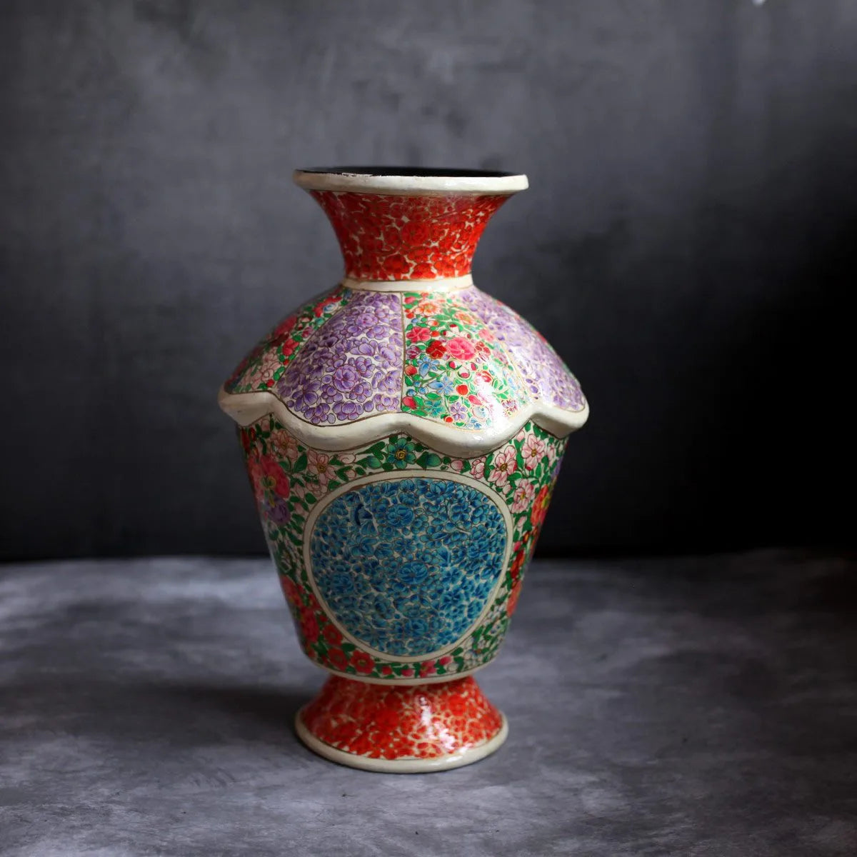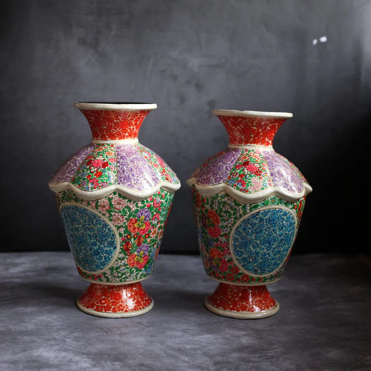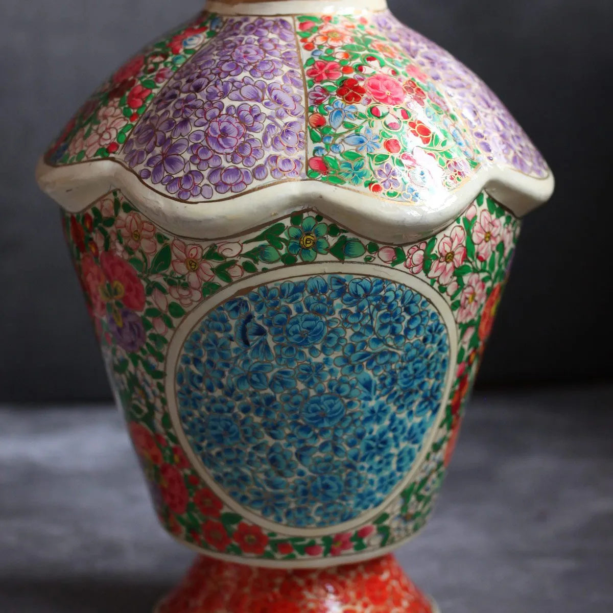 Multicolour Handmade Paper Mache Flower Vase (Set Of 2) | Kashmiri Paper Mache 13 x 9 INCHES