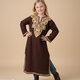 Brown Aari Embroidered Woolen Kids Pheran | Girls Pheran | Kids Wear