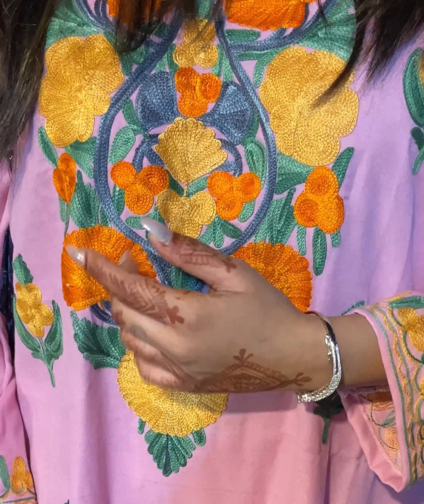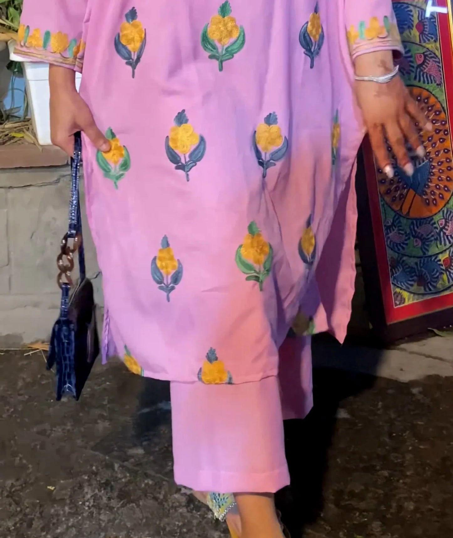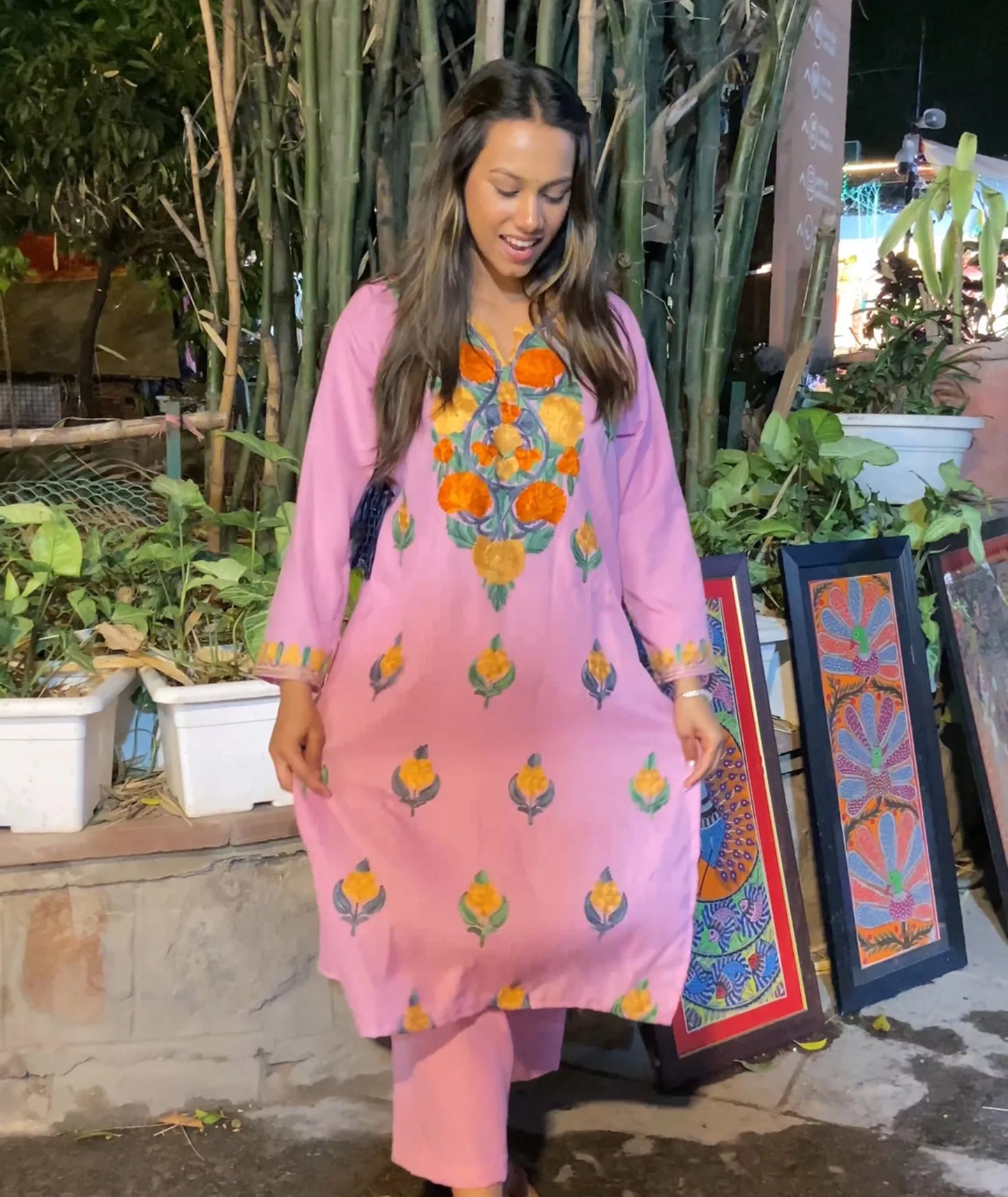 Pink Aari Embriodered Butidaar Cord Set | Full Suit