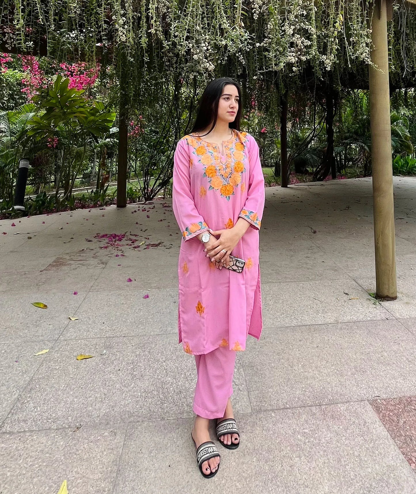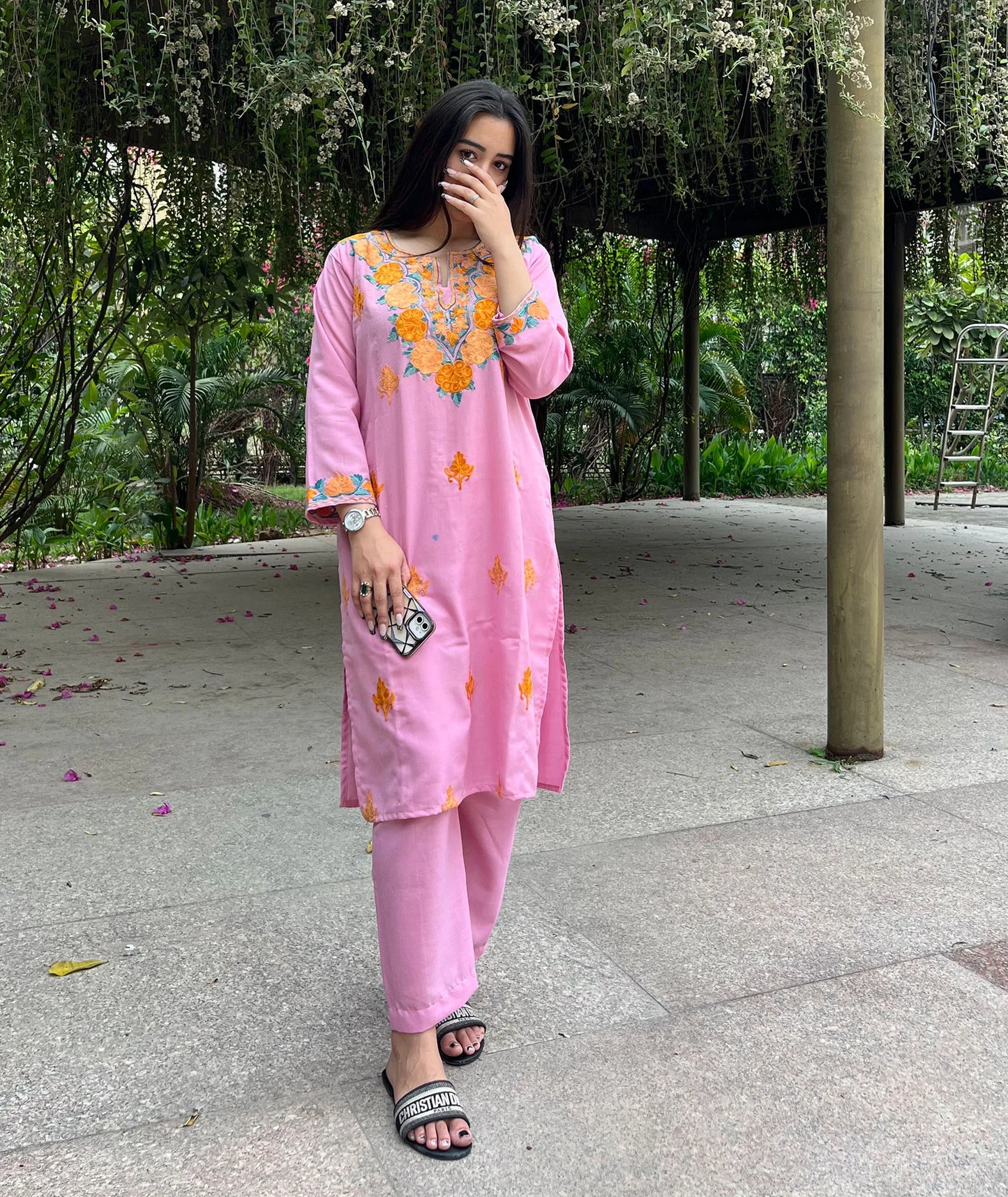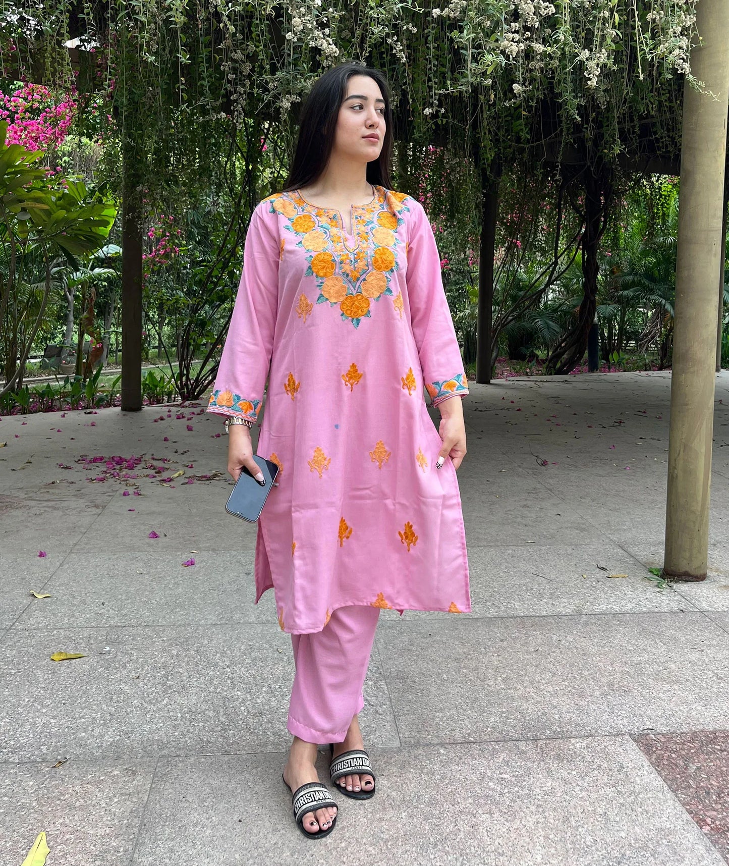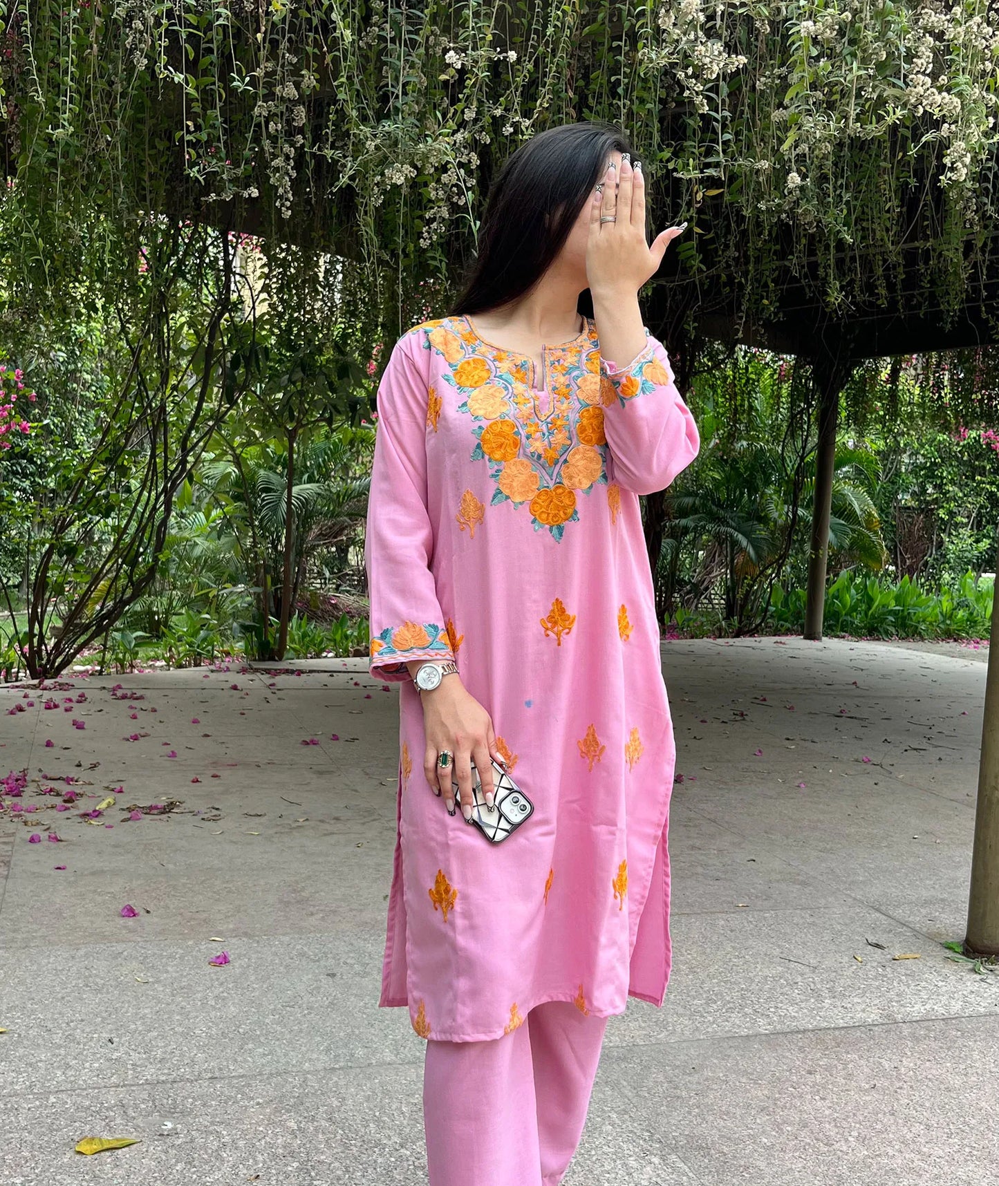 Pink Aari Embriodered Cord Set | Full Suit