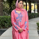 Pink & Blue Embroidered Silk Crepe Co ord Set | Full Suit with Lace Dupatta