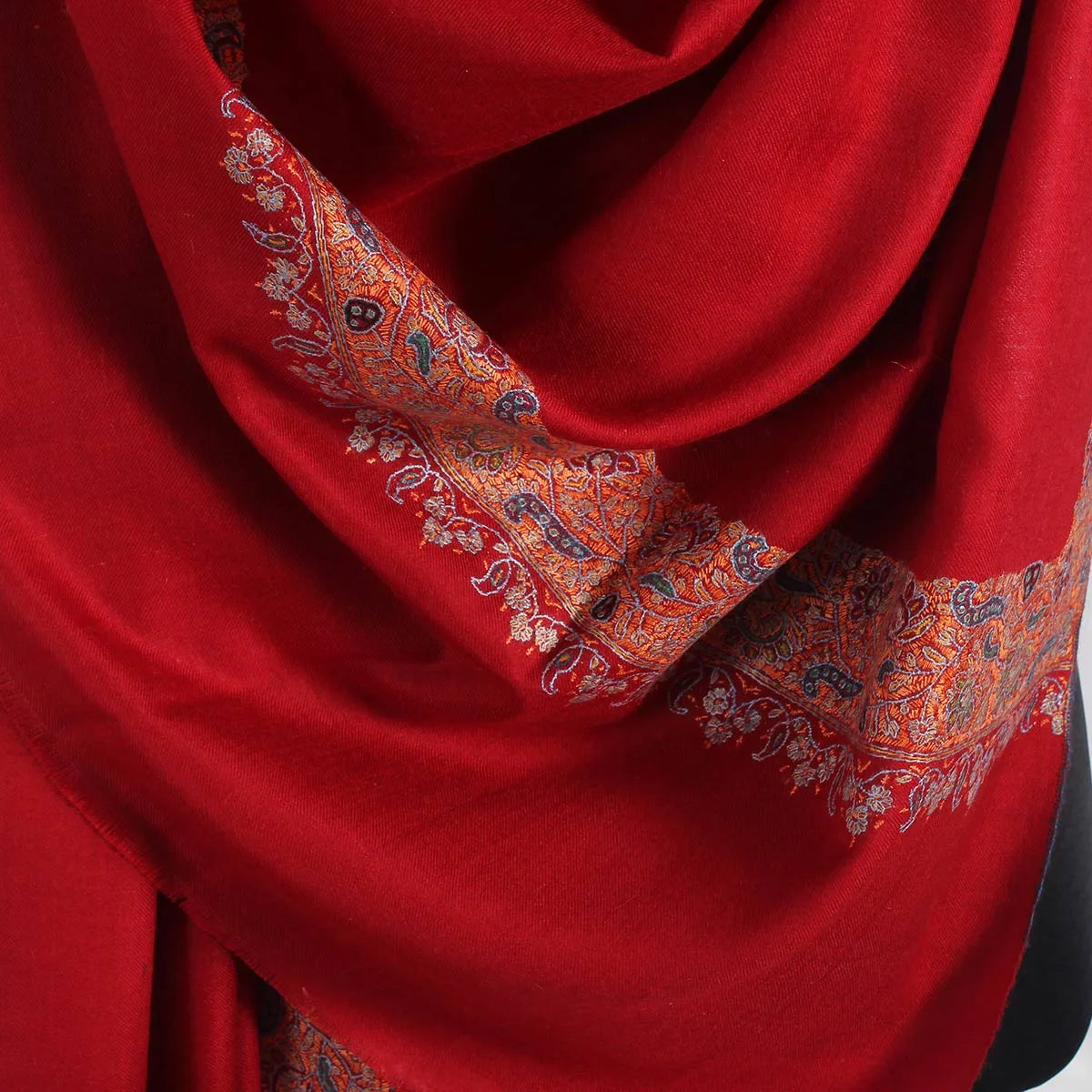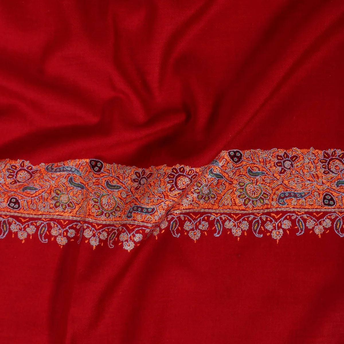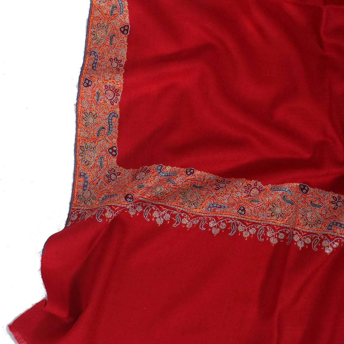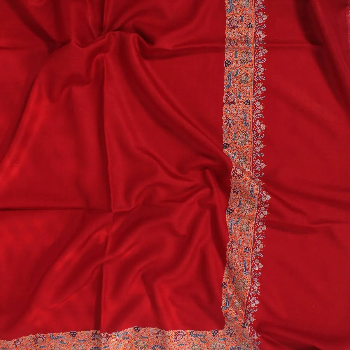 Red Base sozni Embroidered Dordaar Pashmina Shawl