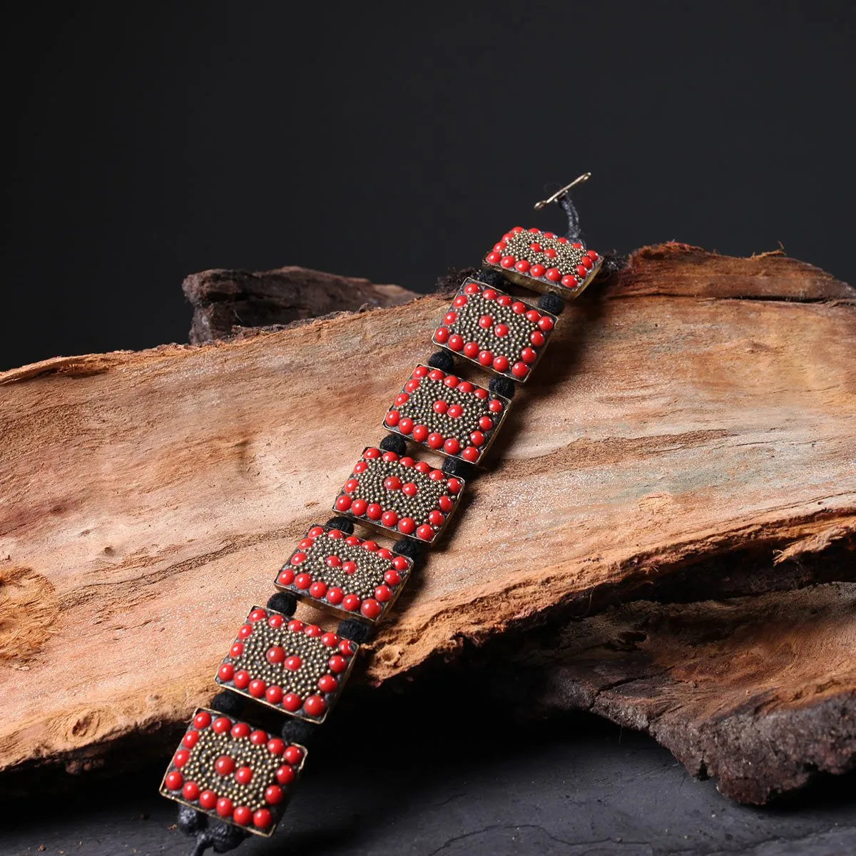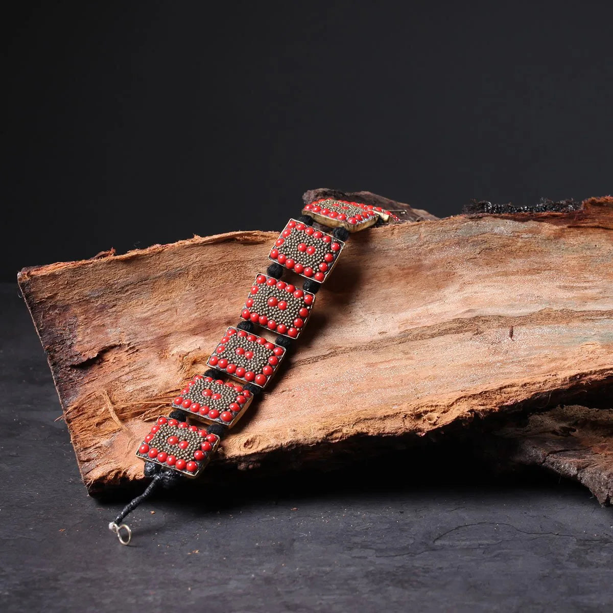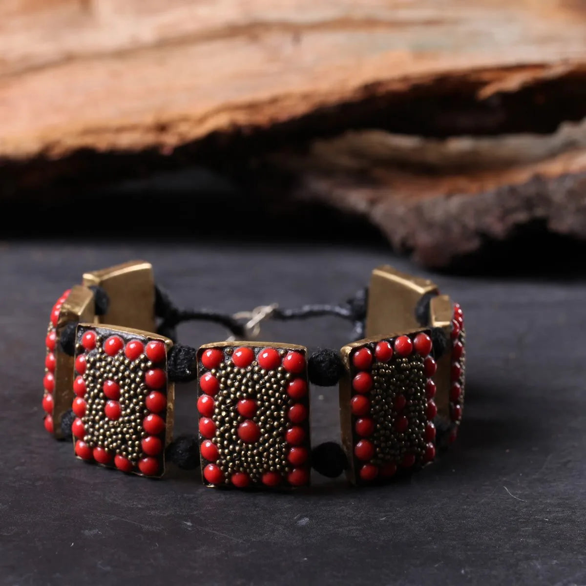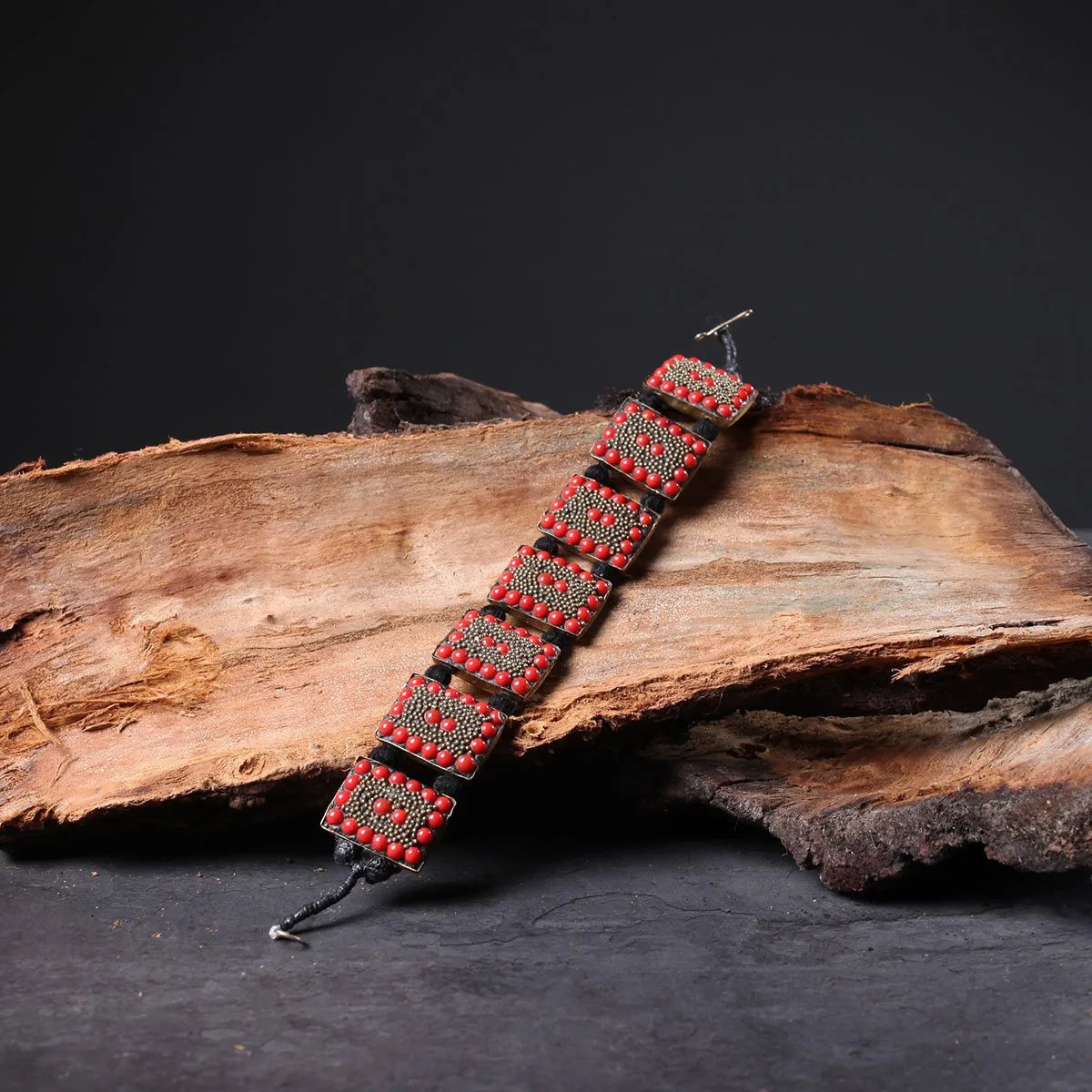 Red Rectangular Handmade Stoned Bracelet