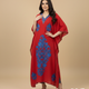 Red & Blue Aari Embroidered Kashmiri Crush Cotton Kaftan | Special Cotton fabric for Hot Summers