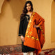 Wrap yourself in the autumnal shades of rust and the radiance of Kashmiri artistry with this shawl, crafted in fine wool. The shawl hosts rich Aari embroidery in earthy tones of yellow, gold and maroon, celebrating nature’s scenic wonders. Woven from soft, fine wool, the shawls offers pleasant warmth yet a lightweight layer, making it perfect for casual, formal and semi formal events