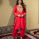 Red Aari Embroidered Woolen Suit With Shawl