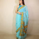 The beauty of Kashmiri embroidery combined with the serenity of a beautiful turquoise sky is what this saree is all about. Artisan designed Aari motifs trace the borders in a graceful rhythm, and the breezy georgette fabric glides around you like a breeze. With each flutter, this radiant yet calm saree exudes a gentle confidence that is appropriate for both formal galas and sunny get-togethers. It creates a bold and classic style statement by fusing cultural elegance with the freshness of nature.