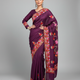 Wine Multifloral Aari Embroidered Kashmiri Pure Silk Saree